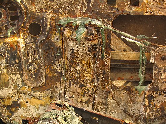 Melted glass dripping on interior passenger door. Photo by