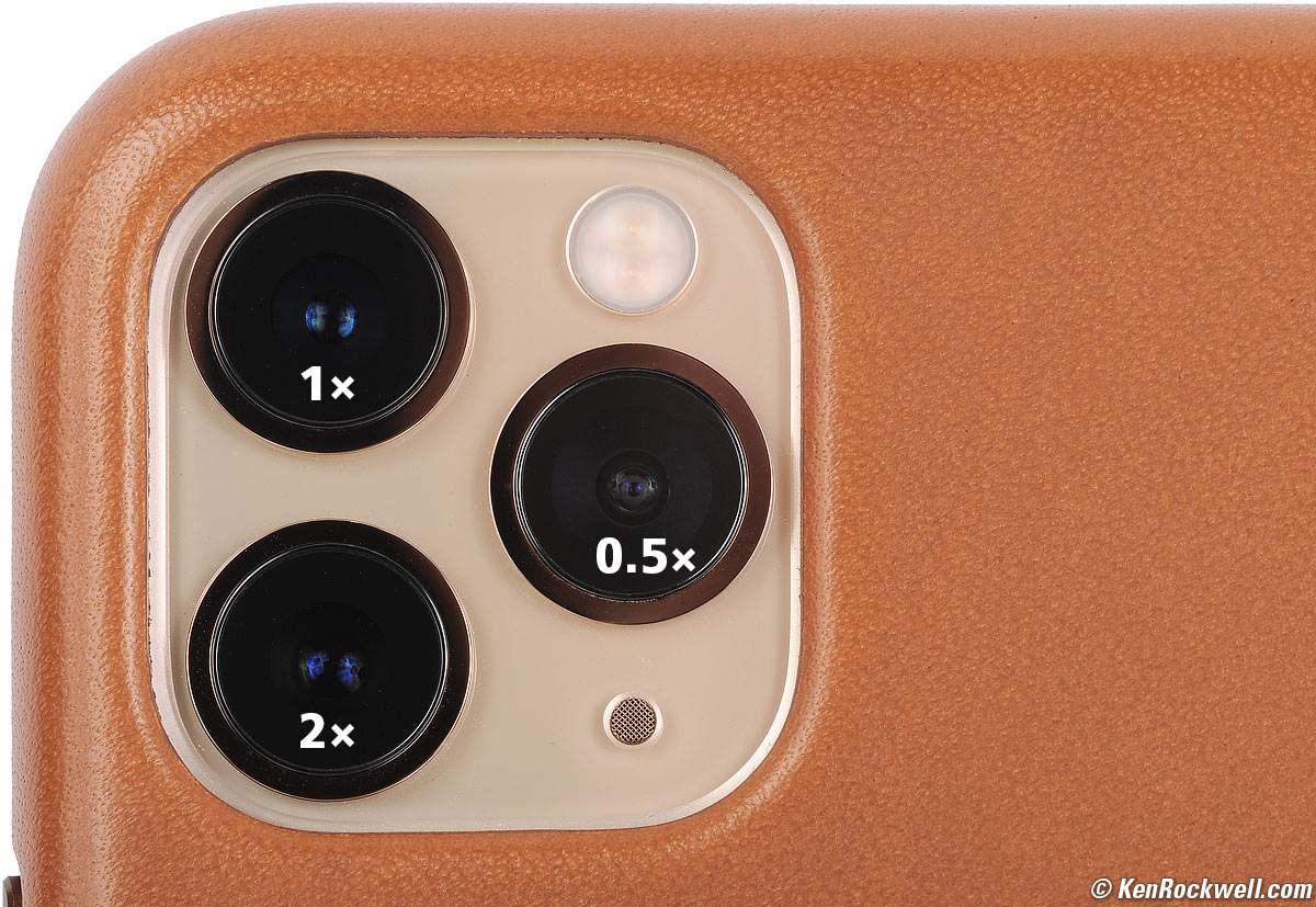 CamerasThe three rear cameras each have a different lens, and have different sensor sizes so that there is no one "crop factor" that applies to all the cameras. The four photo and video cameras are: