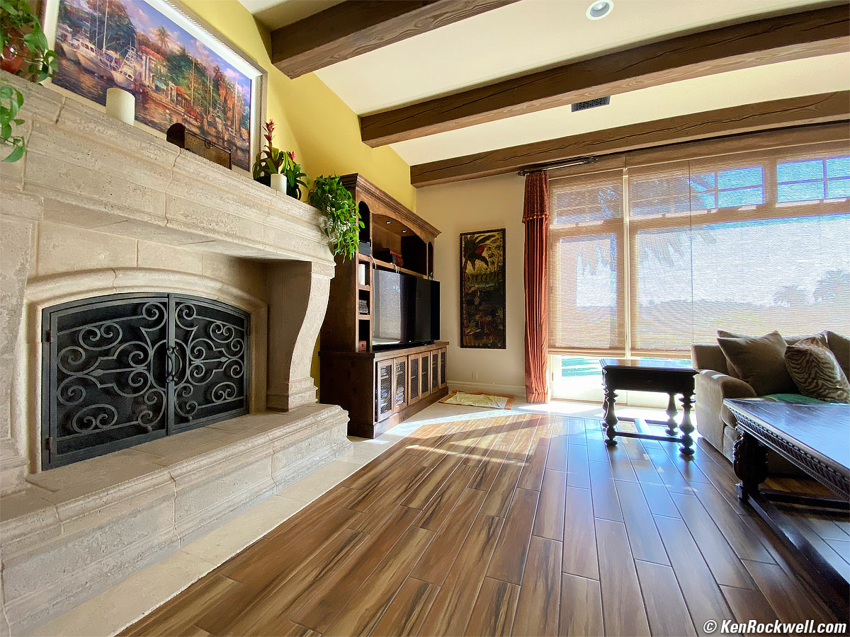 Real Estate Listing ULTRAPAN, 24 September 2019. iPhone 11 Pro Max, 1.54mm (13mm equivalent) ultra-wide camera swept panorama at f/2.4 at 1/120 at Auto ISO 160 (LV 8.76), Perfectly Clear. bigger or full-resolution ULTRAPAN. You can do ULTRAPAN photos that show up to about 270º horizontally, and with the 13mm camera you can see more than ever vertically in the PANO mode. It's now easy to show an entire interior in one shot if you like. You also can do shorter pans of any angle. Better than I could ever do with my rotating-lens panoramic film cameras, the iPhone magically compensates the lighting so we can see outdoors and indoors, and it all comes out looking as it did to our eyes. To those of us who grew up shooting film this is even more impressive, as we know cameras never used to show things the way they look to our eyes in harsh light. Apple is doing a lot of very clever things to make iPhone photos look natural.