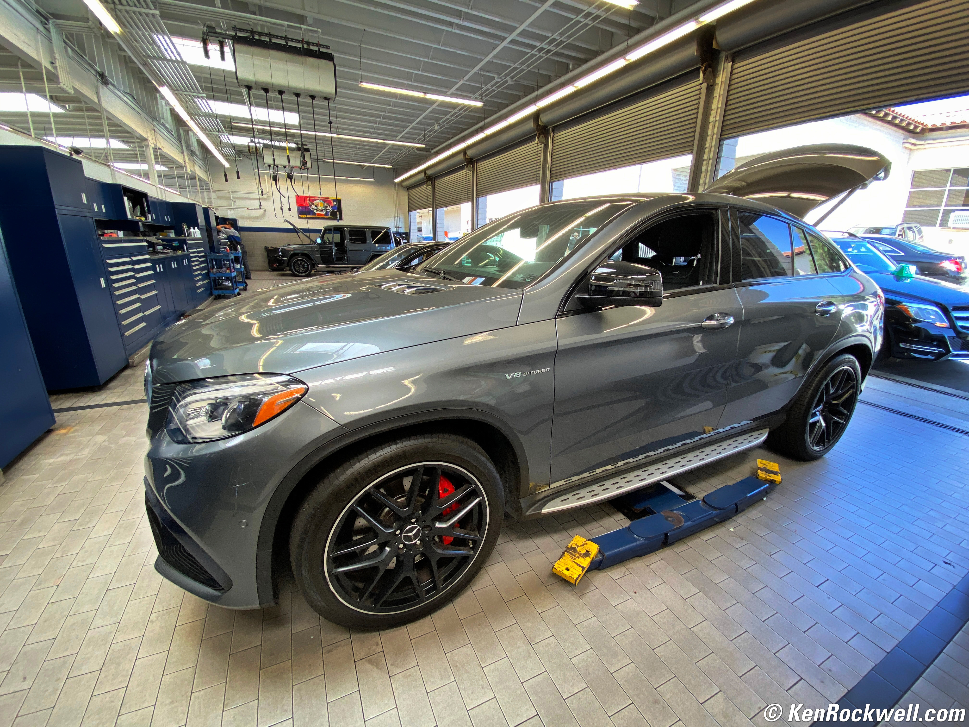 Mercedes AMG GLE 63S Coupe in der Werkstatt, 01 Oktoberfest 2019. iPhone 11 Pro Max, 1.54mm (13mm equivalent) ultra-wide camera at f/2.4 at 1/122 at Auto ISO 100 (LV 9.5), Perfectly Clear. bigger or full-resolution file. This is an example of a bad photo merely trying to "get it all in." The car is too small and looks lost in the service bay because with a lens this wide, you have to get much closer to make a great picture.
