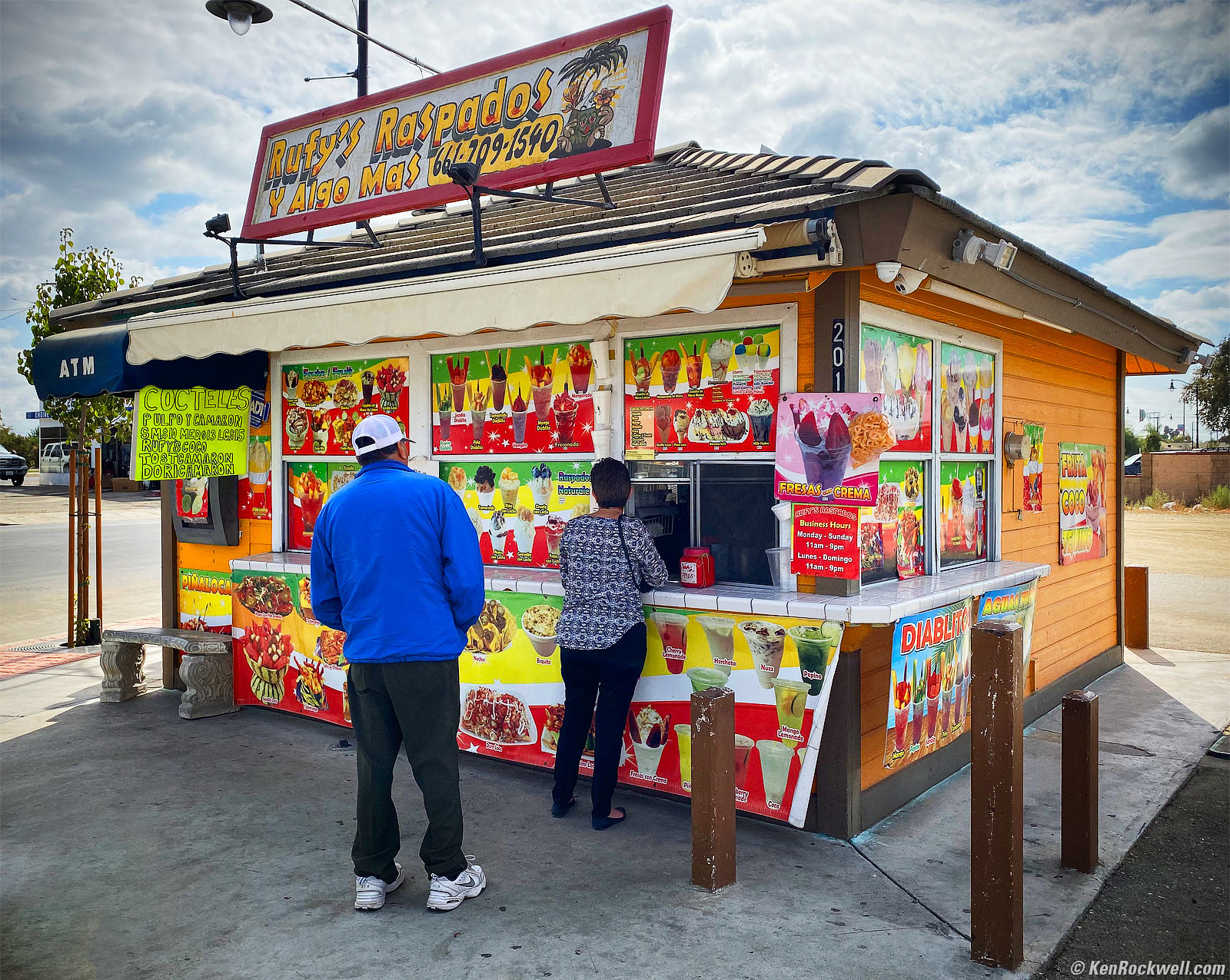 Rufy's Raspados y Algo Mas, McFarland, California, 11:25 A.M. Apple iPhone 11 Pro Max, 4.25mm standard camera (26mm equivalent) at f/1.8 at 1/3,311 at Auto ISO 32 (LV 15.0). bigger.