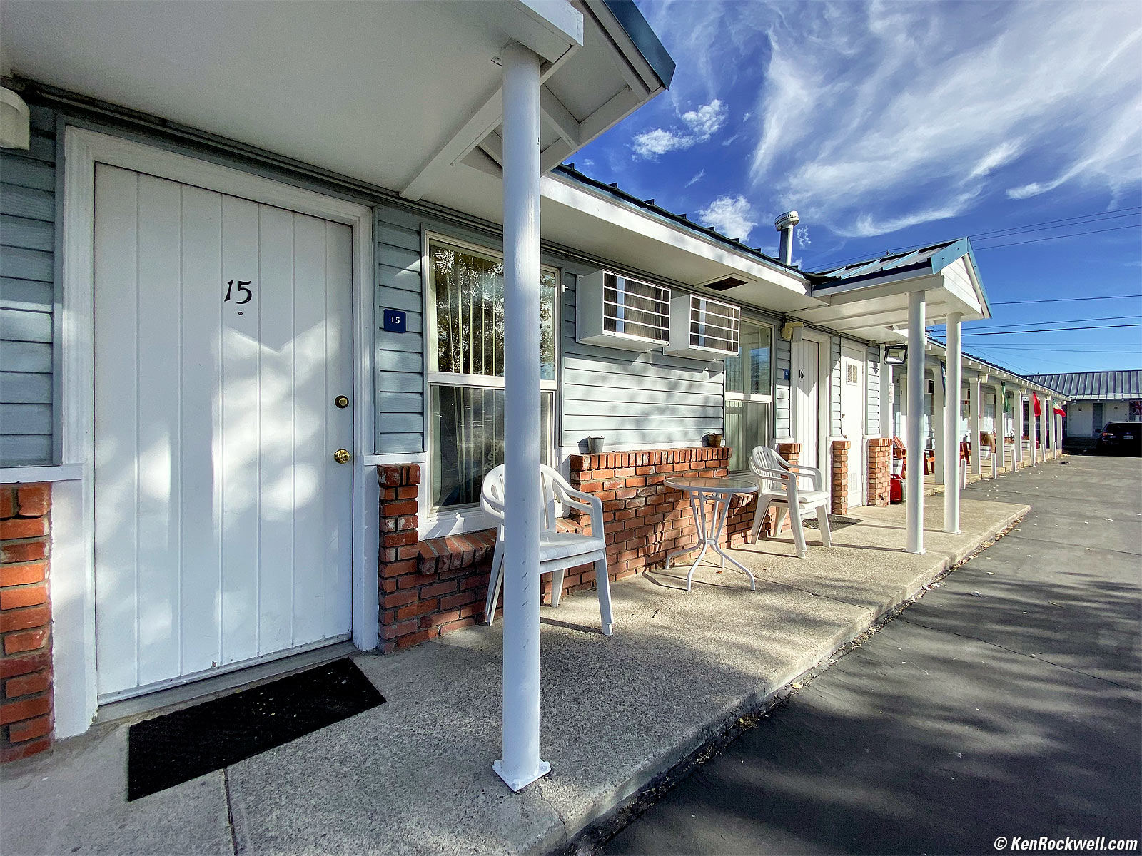 Redwood Motel, Bridgeport, California, 12:13 P.M., 22 October 2019. Apple iPhone 11 Pro Max, 1.54mm ultrawide camera (13mm equivalent) at f/2.4 at 1/826 at Auto ISO 20 (LV 14.5). bigger. Love these memories!!! The iPhone 11 Pro Max' ultrawide camera is so wide it sees well over 90º from side-to-side.
