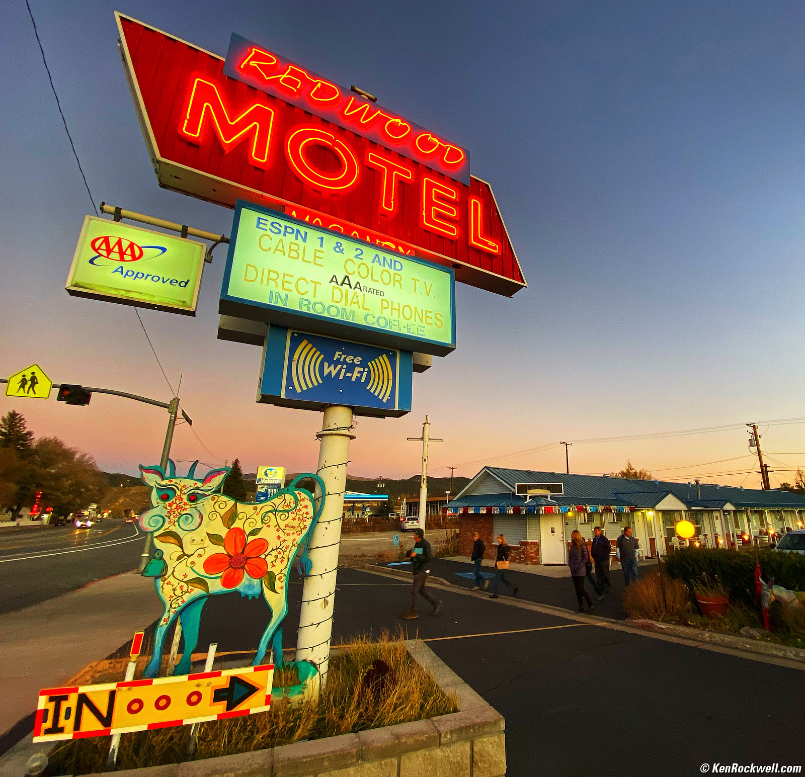 Redwood Motel, Bridgeport, California, 6:23 P.M., 20 October 2019. Apple iPhone 11 Pro Max, 1.54mm ultrawide camera (13mm equivalent) at f/2.4 at 1/60 at Auto ISO 125 (LV 8.1). bigger. Love this trip! So want to do it again.