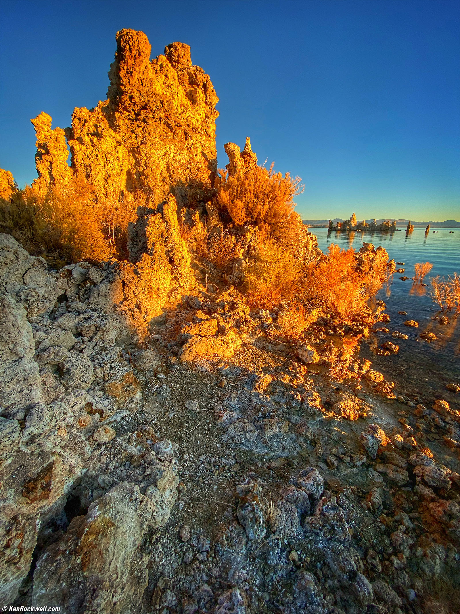 Tufa at Dawn, Mono Lake, California, 7:29 A.M., 22 October 2019. Apple iPhone 11 Pro Max, 1.54mm ultrawide camera (13mm equivalent) at f/2.4 at 1/285 at Auto ISO 20 (LV 13.0). bigger. The iPhone 11 Pro is astonishing at how it handles both shadow and highlight, all by itself. Back when I shot large-format film, it was nearly impossible to get anything other than pitch black where the iPhone shows explicit detail in the shadows in the much darker foreground.