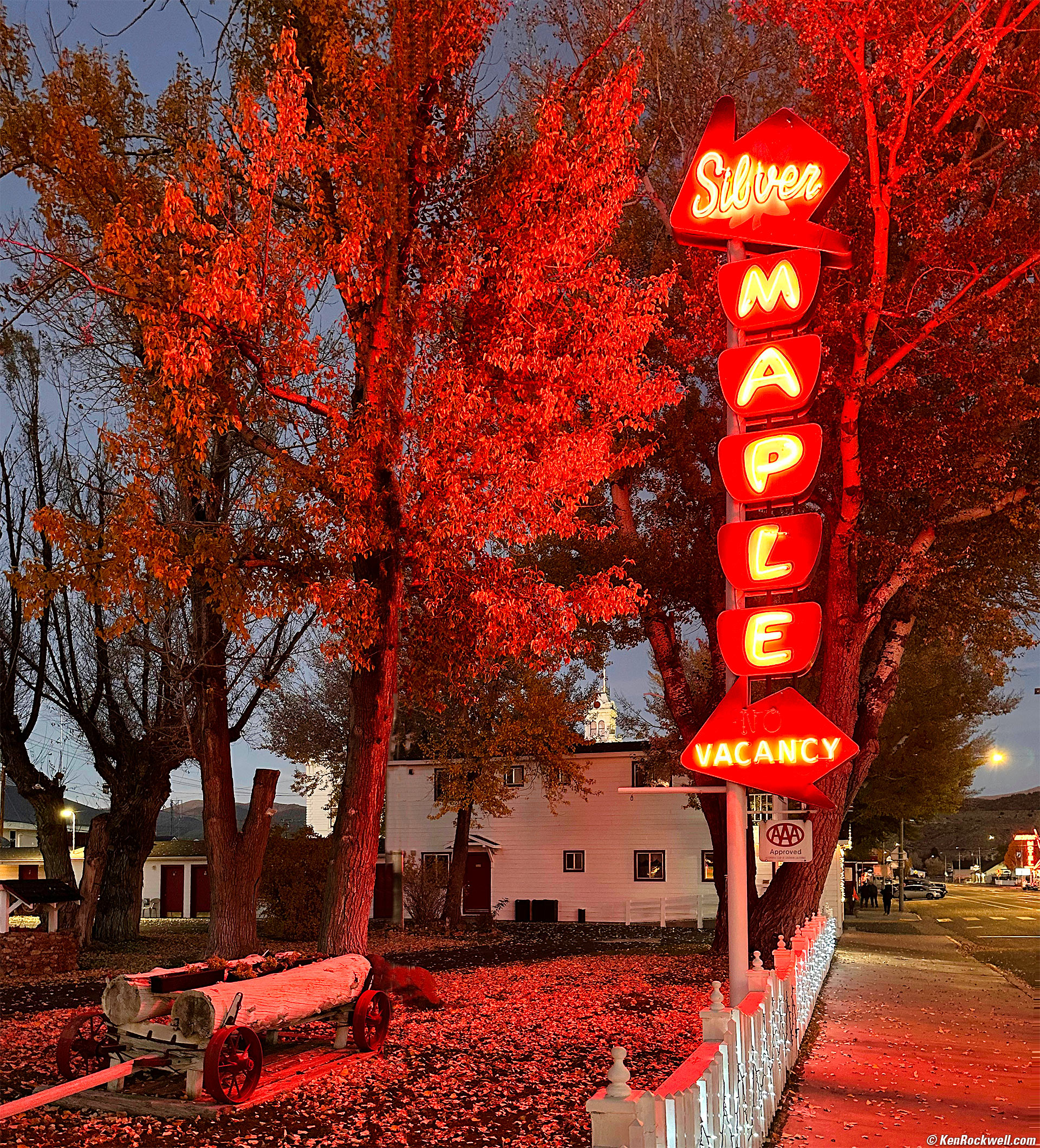 Silver Maple Inn, Bridgeport, California, 6:38 P.M., 19 October 2022. Apple iPhone 14 Pro Max 1× (6.9mm actual or 24mm eq.) camera, f/1.8 at 1/30 at Auto ISO 1,000 (LV 3¼). More tech details. bigger or fit-to-screen.