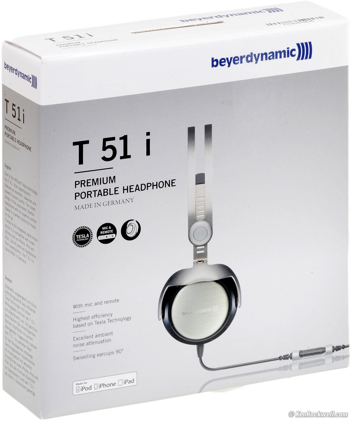 Home Donate New Search Gallery Reviews How-To Books Links Workshops About Contact Beyerdynamic T51i Intro Specs Performance Compared Recommendations Beyerdynamic T 51i Tesla (closed back, 32 Ω, 6.12 oz./172g without cord, about $230). larger. I'd get it at Amazon or at eBay (How to Win at eBay). This all-content, junk-free website's biggest source of support is when you use those or any of these links to approved sources when you get anything, regardless of the country in which you live. Buy only from the approved sources I use myself for the best prices, service, return policies and selection. Thanks for helping me help you! Ken.