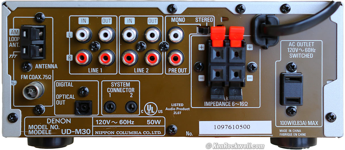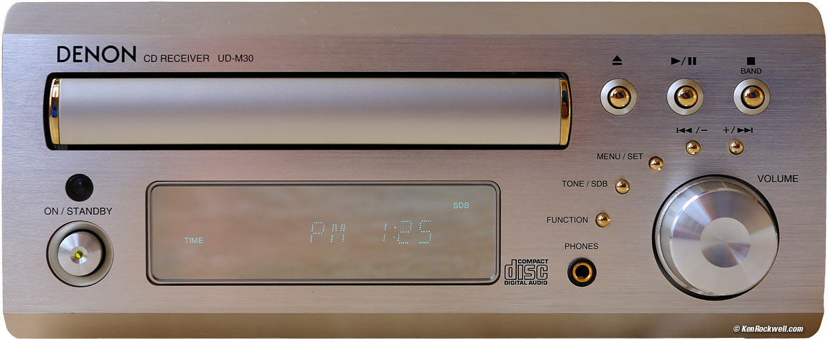 Home Donate New Search Gallery Reviews How-To Books Links Workshops About Contact Denon UD-M30 Intro Specs Performance Measurements Usage Recommendations Denon UD-M30 (16 watts per channel, about $150 used). enlarge. I'd get it at this link directly to them at eBay (see How to Win at eBay). This free website's biggest source of support is when you use those or any of these links when you get anything, regardless of the country in which you live — but I receive nothing for my efforts if you buy elsewhere. I'm not NPR; I get no government hand-outs and run no pledge drives to support my research, so please always use any of these links for the best prices and service whenever you get anything. Thanks for helping me help you! Ken.
