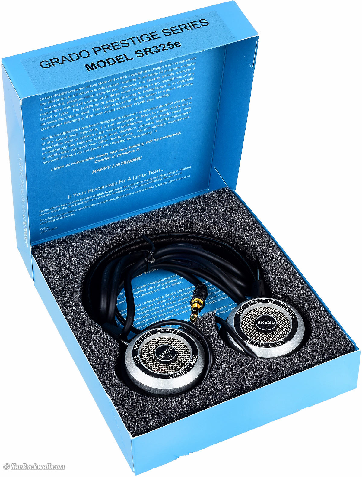 Grado SR325eOpen On-Ear HeadphonesMade in USAIntro Specifications Performance Compared Usage Recommendations Grado SR325e (32Ω, 12.6 oz./358 g without cord, about $295) bigger. I'd get mine at Amazon, at B&H or at Crutchfield. This all-content, junk-free website's biggest source of support is when you use those or any of these links to my personally-approved sources when you get anything, regardless of the country in which you live. Buy only from the approved sources I use myself for the best prices, service, return policies and selection. Thanks for helping me help you! Ken.