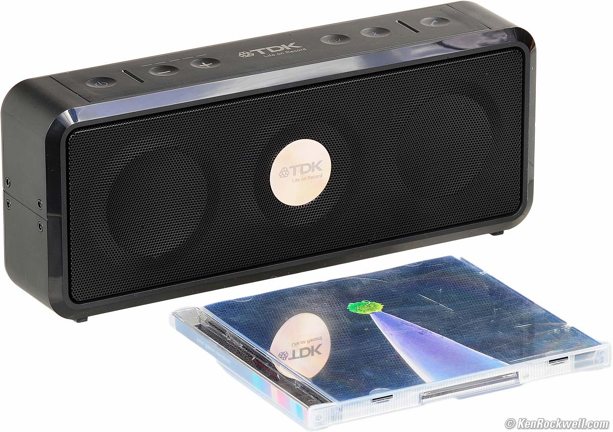 TDK A33World's Best Bluetooth Speaker: AC/DC, Waterproof with MicrophoneTDK A33 (40.8 oz./1,156g, 9.5 x 3.75 x 2", two 1.5" speakers each driven with 3 watts and one 2.5" woofer driven with 9 watts, two 2.5" passive radiators, built-in 6-AA Ni-MH rechargeable battery, AC or DC power, originally $150 but about $20 used if you know How to Win at eBay in 2025). enlarge. This all-content, junk-free website's biggest source of support is when you use those or any of these links to approved sources when you get anything, regardless of the country in which you live. Thanks for helping me help you! Ken. TDK's A33 battery replacement instructions. Battery part number EU-BT00003000-B available at Amazon and available at eBay.