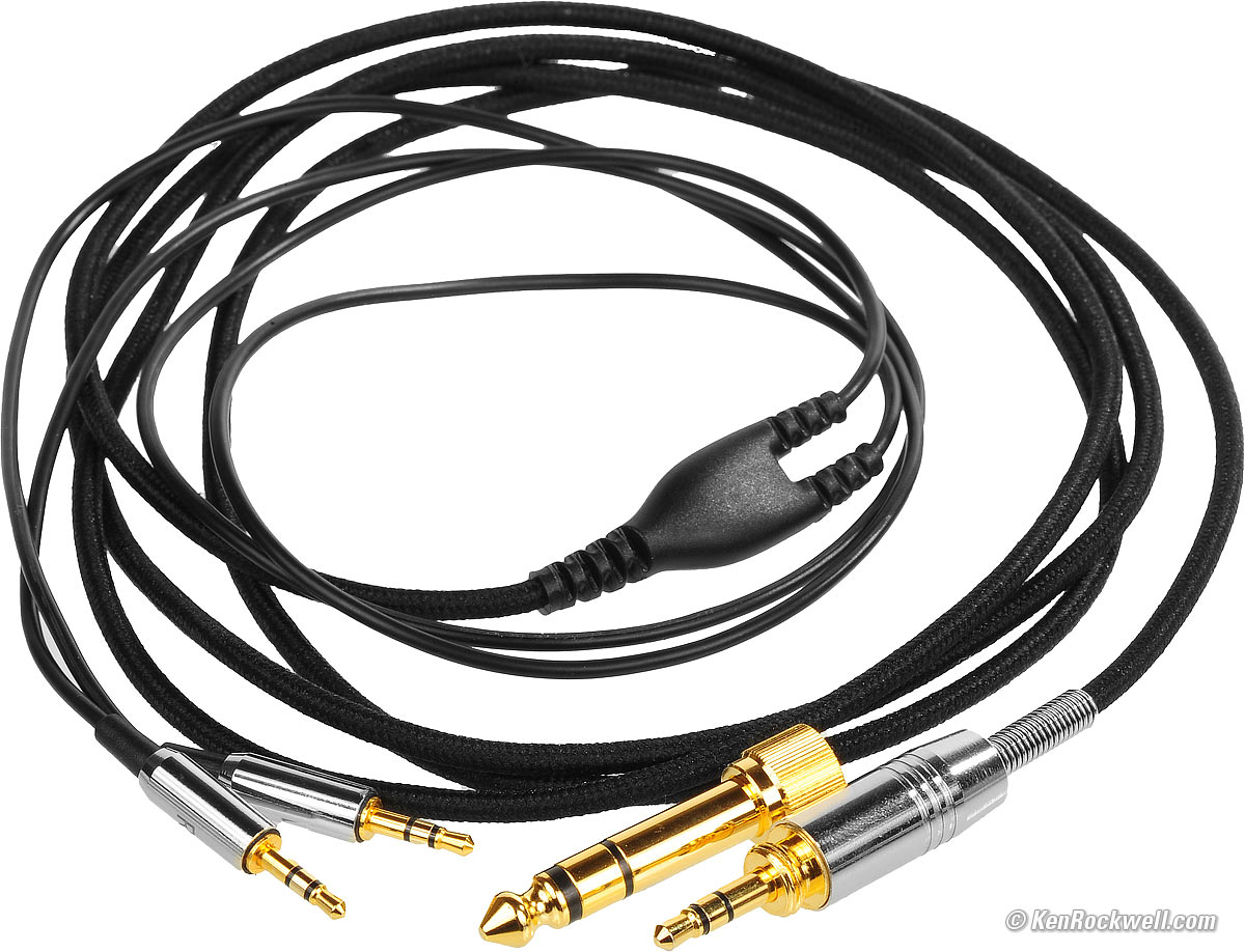 CordVerum 1 supplied cable. bigger. The supplied cloth cable is very soft and supple. It has no microphonics; you won't hear noise as you handle it. 3.5mm plug with ¼″ screw-on adapter included. 2.5mm earpiece plugs. The cord uses very thin and supple copper conductors, so the cable's effective series resistance measures about 900 mΩ per channel. That suggests about 28 AWG.
