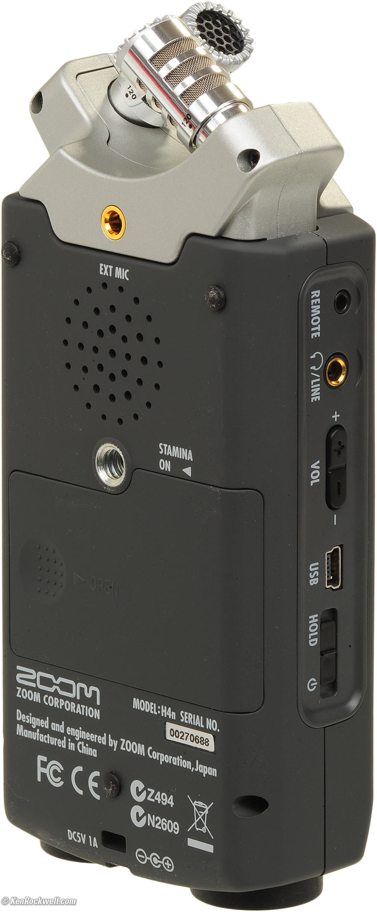Home Donate New Search Gallery Reviews How-To Books Links Workshops About Contact Zoom H4n Intro Specs Performance Measurements Usage Recommendations More Zoom H4n (12.0 oz./339g with Ni-MH and 2GB card, about $300). larger. This free website's biggest source of support is when you use these links, especially this link to it at B&H Photo-Video when you get anything, regardless of the country in which you live. Thanks! Ken.