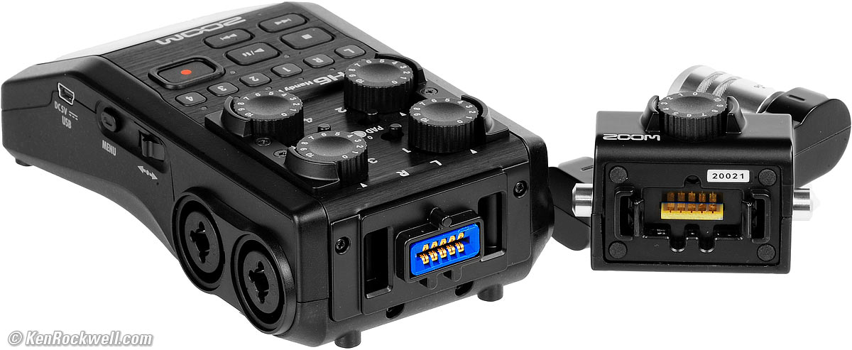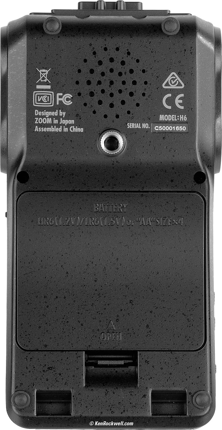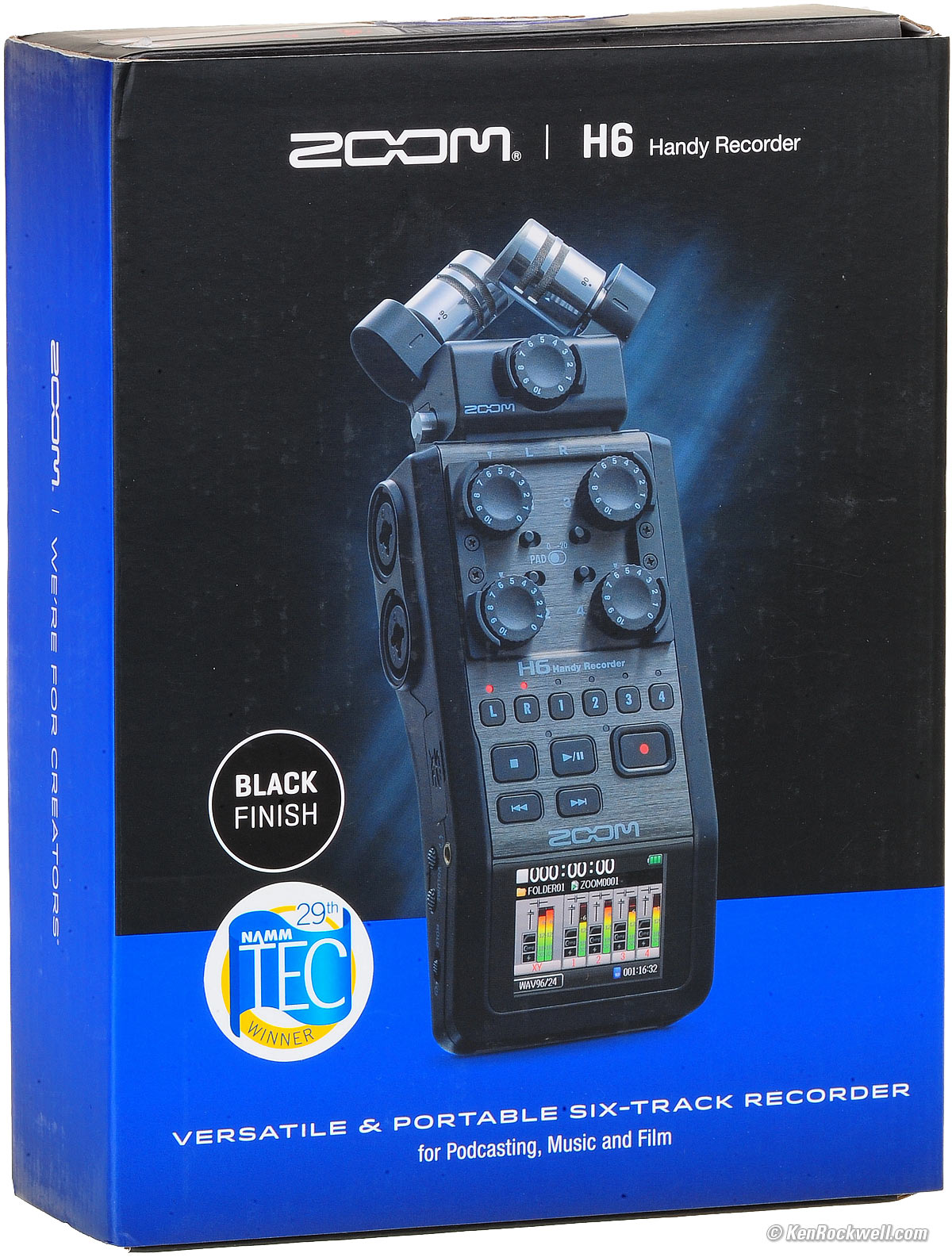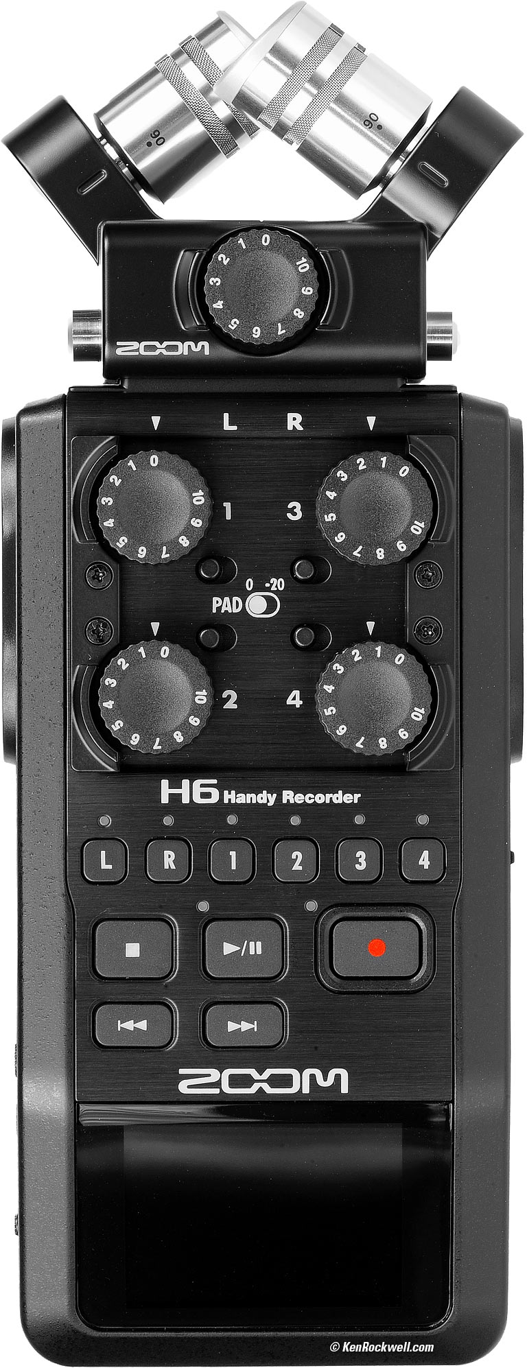 Zoom H66-Track RecorderAll Black 2020 VersionIntro Specifications Accessories User's Guide Recommendations More Zoom H6 Recorder (18.6 oz./528 g with included stereo mic, 4-AA eneloop cells and SD card as shown, $349.99). bigger. I got mine at B&H. I'd also get it at Adorama or at Amazon or at eBay if you know How to Win at eBay. This all-content, junk-free website's biggest source of support is when you use those or any of these links to approved sources when you get anything, regardless of the country in which you live. Thanks for helping me help you! Ken. My H6 is turned off in all these photos; even if ON the backlit LCD wouldn't be visible under my extremely bright studio strobes.