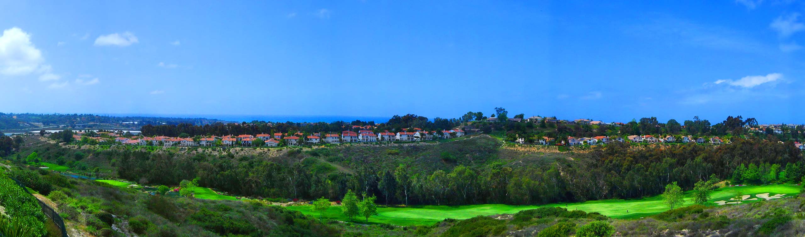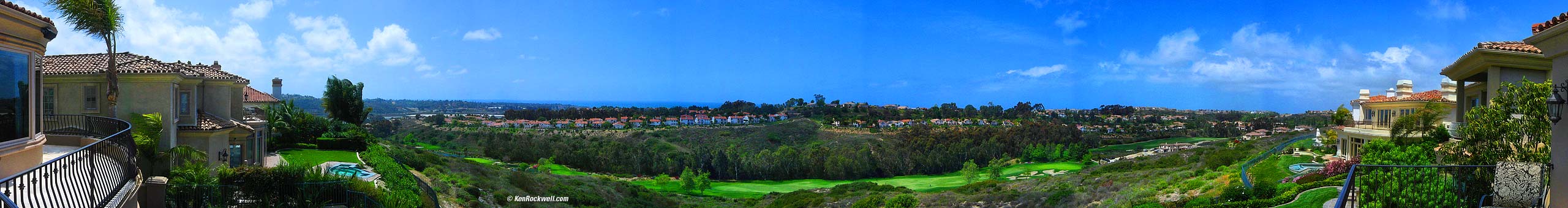 A view from a rear balcony overlooking the fourth fairway to the Batiquitos Lagoon, San Clemente Island and the Pacific Ocean, a typical 180º view. (click for huge version)