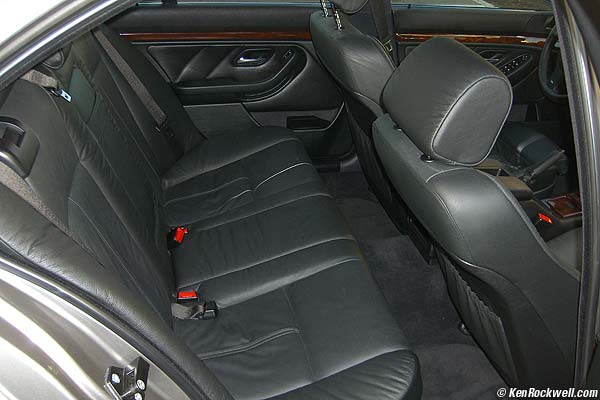Trunk. Optional ski pass-through on folding rear seats, and premium hi-fi woofer below rear deck. Split Folding Rear Seats and Ski Bag ($475). I kid you not: the rear seats fold forward so you can jam all sorts of things in the trunk. Another benefit is you can get to things in the back of the trunk without having to unpack everything! An American friend also noted if you drink and drive or carry loaded weapons that if stopped for questioning you can throw the contraband in the trunk where it's legal without having to get out of the car! I wouldn't know, even though I'm personally part Bavarian (the B in BMW and the inventors of the Oktoberfest) I don't drink. Gas Guzzler Tax: A relic of America's more timid times, the US Government still imposes the idiotic and obsolete gas guzzler fine of $1,000 for the sport version. The sport model is designed for performance without regards to fuel economy, thank God; that's why BMW makes Diesels for Germany. The regular, non-sport 540i gets better fuel economy and isn't subject to this fine. This is why I caution that the 540 sport is for the kind of people who appreciate blown hot rods and not for people who need it to commute to work. 6-Disc CD Changer ($1,100): This is mounted in the trunk. It prevents you from having to jockey disks from and to the dash-mounted player while you drive. With this 6 disc changer you have seven discs on tap, since of course you have a seventh disc in the dash. Unlike my Mercedes, the CD changer is so smart that it automatically knows which of the six positions have a CD and which are empty. Instead of lighting all six CD buttons on the dash it only lights the buttons which actually have a CD loaded. Clever! OPTIONS TO AVOID Obsolete GPS Navigation system ($1,800). These old car-mounted GPSs are as obsolete as the old car phones. Hand-held GPSs like this one have replaced car-mounted units as of 2004. Hand-held GPSs that do street-by-street and turn-by-turn navigation are so new that few people know about them yet. Just like pocket cell phones, these pocket GPSs come with you into whatever you drive (or bike or walk or jet ski) and are of course already programmed with your same personal favorite places when you take them from vehicle to vehicle. More here about them. I paid $500 for my pocket GPS complete with maps for the entire USA, and it's also programmed with just about every museum, dry cleaners, gas station, restaurant etc. and can do things like let you search by name (BMW dealer) or category (Mexican restaurant) and give you lists of them by distance, with phone numbers and addresses as well. Why pay more to get less in a car-mounted dinosaur? Even worse, the GPS system also absorbs the radio and computer controls so it's much more difficult to work the radio or trip computers without taking your eyes from the road. Comfort Seats ($1,200): These big seats are standard in the 7-series. They add a pivot adjustment in the middle of the seat back! Of course this adjustment is unnecessary unless you have a very peculiar back. The comfort seats are designed for fat butts. Forget them for a sports car since they lack side support. The sport seats that come standard with the sport package are superbly comfortable and finished ion the softest leather you'd dare have in a car, presuming you have an athletic body yourself. Fat butts will overflow from the sports seats. Of course this is very personal; go sit in them yourself and see. No one can tell you what's comfortable for you. OTHER OPTIONS YOU DON'T WANT OR CAN'T GET Rear Sunshades: ($575) What? These are little rolled up black scrims you can pull out of the rear doors and clip so they cut down the direct light. The rear window has a motorized scrim controlled from the dash. I've never figured out why people like these, so I didn't order them. My wife loves them, however, but given tinted windows she's just as happy. Heated Steering Wheel ($150) This is only available on the crappier, standard wheel of the non-sport 540. You can't get this with the far better sport package's M Sport steering wheel. Honestly, if I drove in winter the sport 540 is not the car to get anyway; I'd want all wheel drive. Lumbar Support for Front Seats ($400) Only available on the regular, non-sport seats that only come on the base model 540. They're not available on the sports seats that come in the sport version. They are standard on the comfort seats you don't want. Rear Door Side Impact Airbags ($385) All 540s already have rear head protection airbags, standard. That's the HPS logo (Head Protection System) on the inside C-pillar. Additional rear door side airbags would be a great option if you never carried children. If you do carry children these door bags could kill them. I've seen many cars with this option only to see red stickers in the door jambs pointing out that these bags have been disabled at the request of the customer. Self Leveling Suspension. Only available on the 540 station wagon, on which it's standard. WINDOW STICKER FOR AN OPTIMALLY CONFIGURED 2003 540i see an actual original factory sticker here.