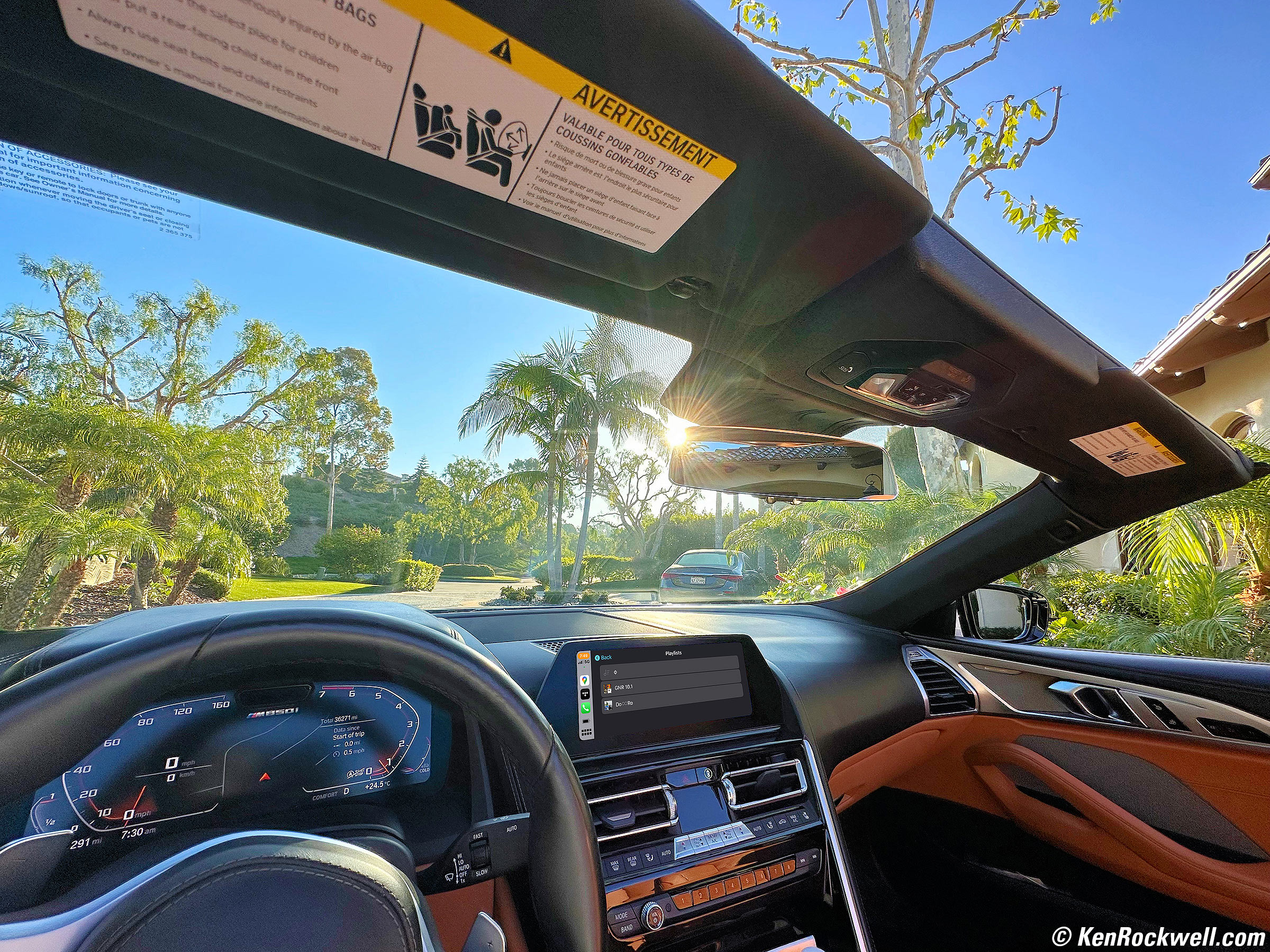Movin' outReady to Head Out on the Highway in the Cockpit of My BMW M850i Convertible with My Favorite Tidal Playlists, 7:30:58 AM, Monday, 28 August 2023. Apple iPhone 14 Pro Max 0.5× (2.2mm actual or 13mm eq.) camera at f/2.2 at 1/855 at Auto ISO 50 (LV 13.0), CarPlay screen composited from a screen grab at 7:50 AM, Thursday, 24 August 2023. enlarge enough to see my favorite playlists.