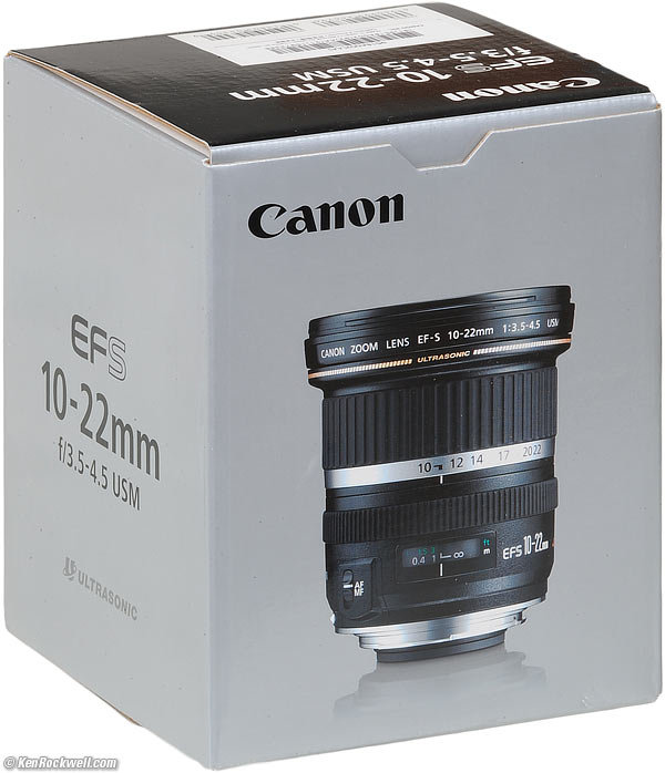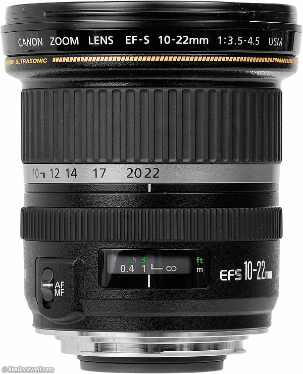 Compared top Introduction Specs Performance Compared Usage Recommendations I got my EF-S 10-22mm at Adorama. I'd also get it at B&H or at Amazon, or used at eBay (How to Win at eBay). The newer Canon RF-S 10-18mm is optically far superior, as well as half the price. See its comparison.