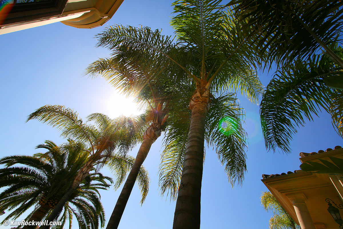 Ghosts performance top Shot directly into the Aviara sun at 10mm at f/10. bigger. There's no problem with flare or ghosts. If I go out of my way, I can get one faint green blob opposite the sun, but you have to realize that this is an extreme example shown above. This is excellent performance, but still not quite as good as the 10-18mm.
