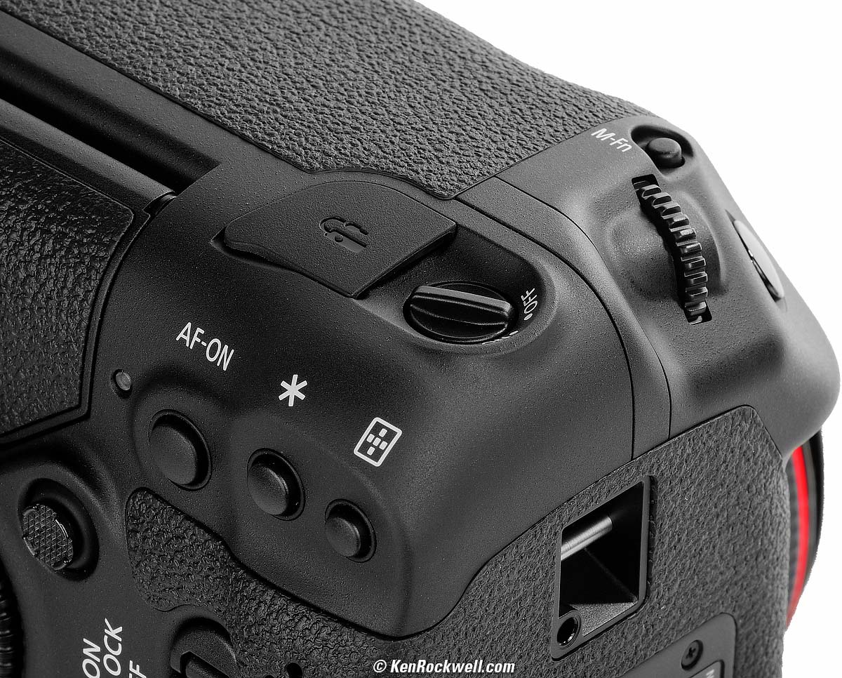 ErgonomicsConsumers don't realize that pro cameras distinguish themselves mostly by their superior ergonomics which let us set the camera much more quickly to respond to changing conditions; the pictures are the same. If we're covering an event and a bomb goes off or a guy runs inside, we can simply turn and fire and we have the the shot while twerps with consumer cameras or mirrorless are still trying to find the right menu setting. Everything we need has its own button on the 1DX Mk II; we don't have to stop and futz with menus. It turns on and everything works instantly; there are no delays. The vertical controls are superb. Not only is there a duplicate shutter button, there are four function buttons, one dial, a multiway thumb controller and a lock-out switch all dedicated to vertical shooting. In other words, you don't lose any control as you flip the camera for vertical shots; all the same controls are duplicated, and the SET and rear dial fall into the same position as you flip the camera. For those of us who actually shoot for a living this is another reason we love a genuinely pro camera like the 1DX Mark II. Vertical shooting controls, Canon 1DX Mk II. bigger.