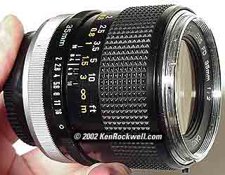 INTRODUCTION This is a pretty darn good manual focus lens. For some reason some of the glass internally has yellowed on this lens, making it unsuitable for color photography and ideal for b/w. SPECIFICATIONS 52mm filter, stops to f/16, focus to about a foot. All metal construction. PERFORMANCE Color balance is severely yellow, making this lens useless for color photography. This is actually helpful for B/W photography if you don't use a yellow filter. It is very sharp. Barrel distortion is typical. Ghosting is OK, I don't recall looking for it or seeing anything that bad. RECOMMENDATIONS Forget this for color. It is obviously too yellow. Try a different 35mm lens. |