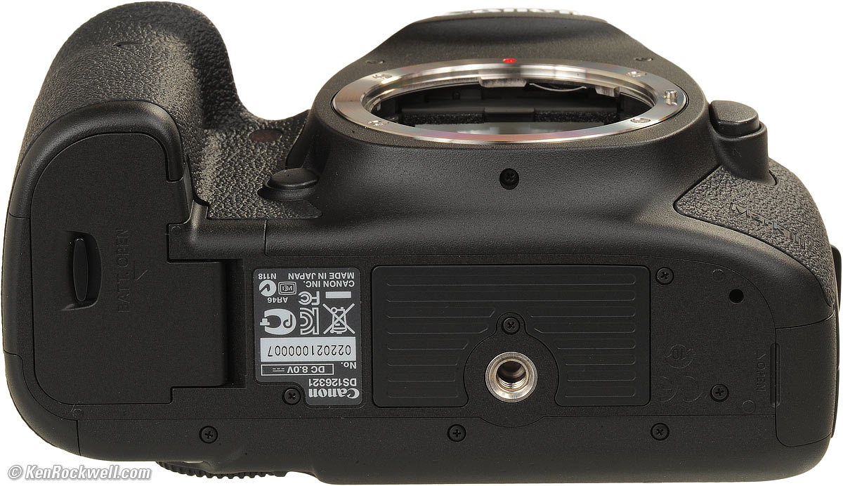 3.) Power Switch Fixed Power switch on TOP of camera, yay! (but not by shutter, boo.) enlarge. The defective rear power switch lever that used to knock itself to OFF all the time has been put where it belongs, on the top of the camera. 1987's Canon EOS 650 had this correct with the switch on top; I'm unsure why Canon ever botched this by putting it on the back where it gets knocked on most of their now-obsolete DSLRs.