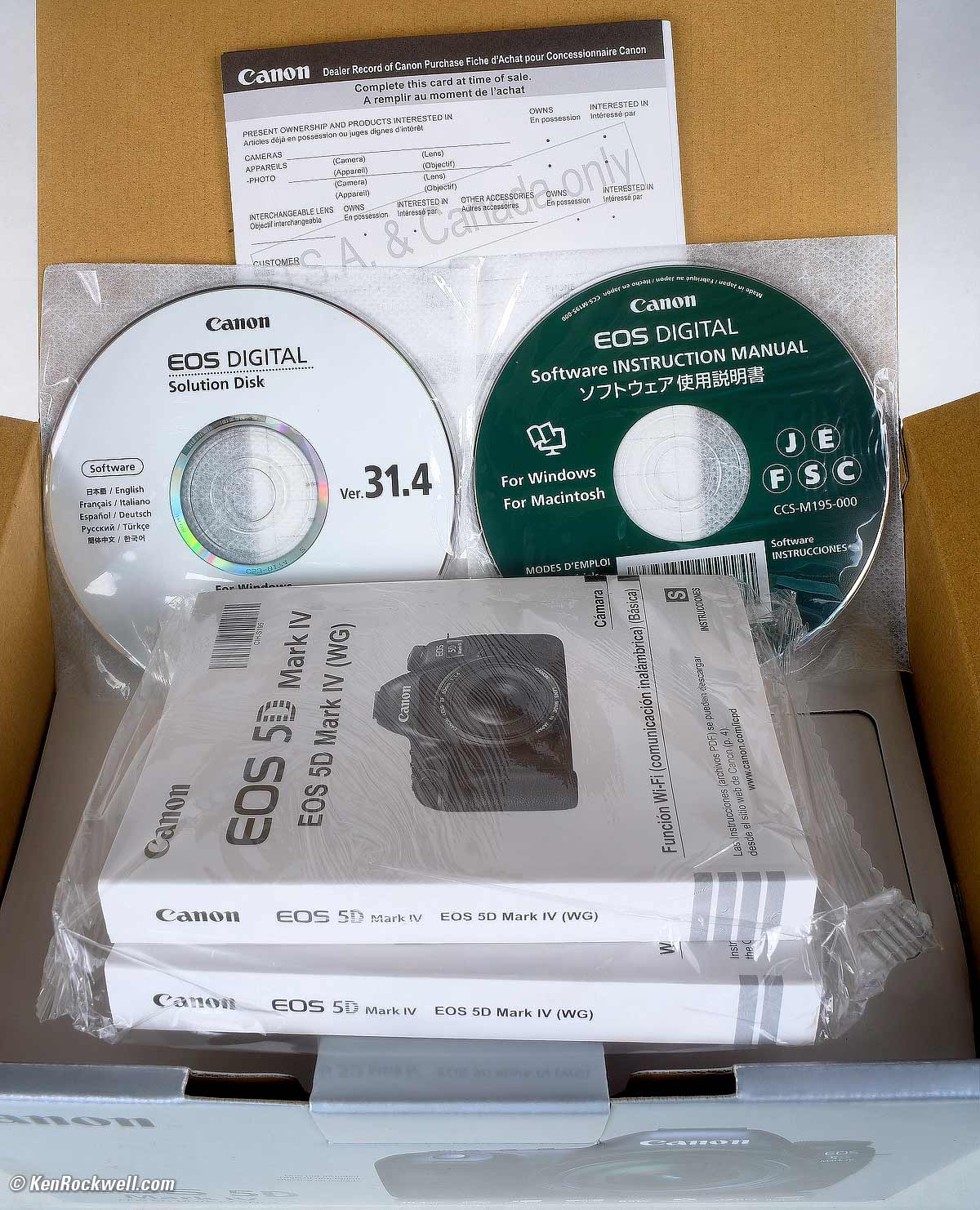 Included specifications topUSA Warranty Card, Discs and Manuals, Canon 5D Mk IV (USA Version). bigger.