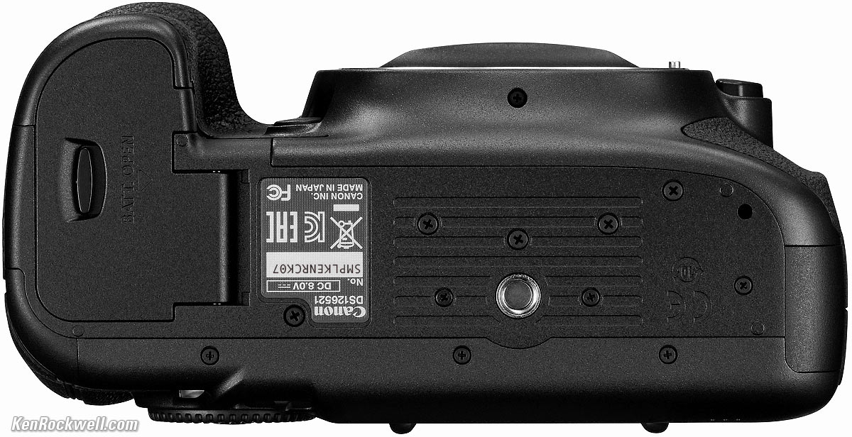 Included Bottom, Canon 5DS. bigger. EOS 5DS or 5DS R Body. LP-E6N Battery. Eyecup Eg. Wide Strap EW-EOS5DS or EW-EOS5DSR. "Cable Protector," actually a strain relief for the camera's sake. Interface Cable IFC-150U II. EOS Digital Solution Disc (not shown).