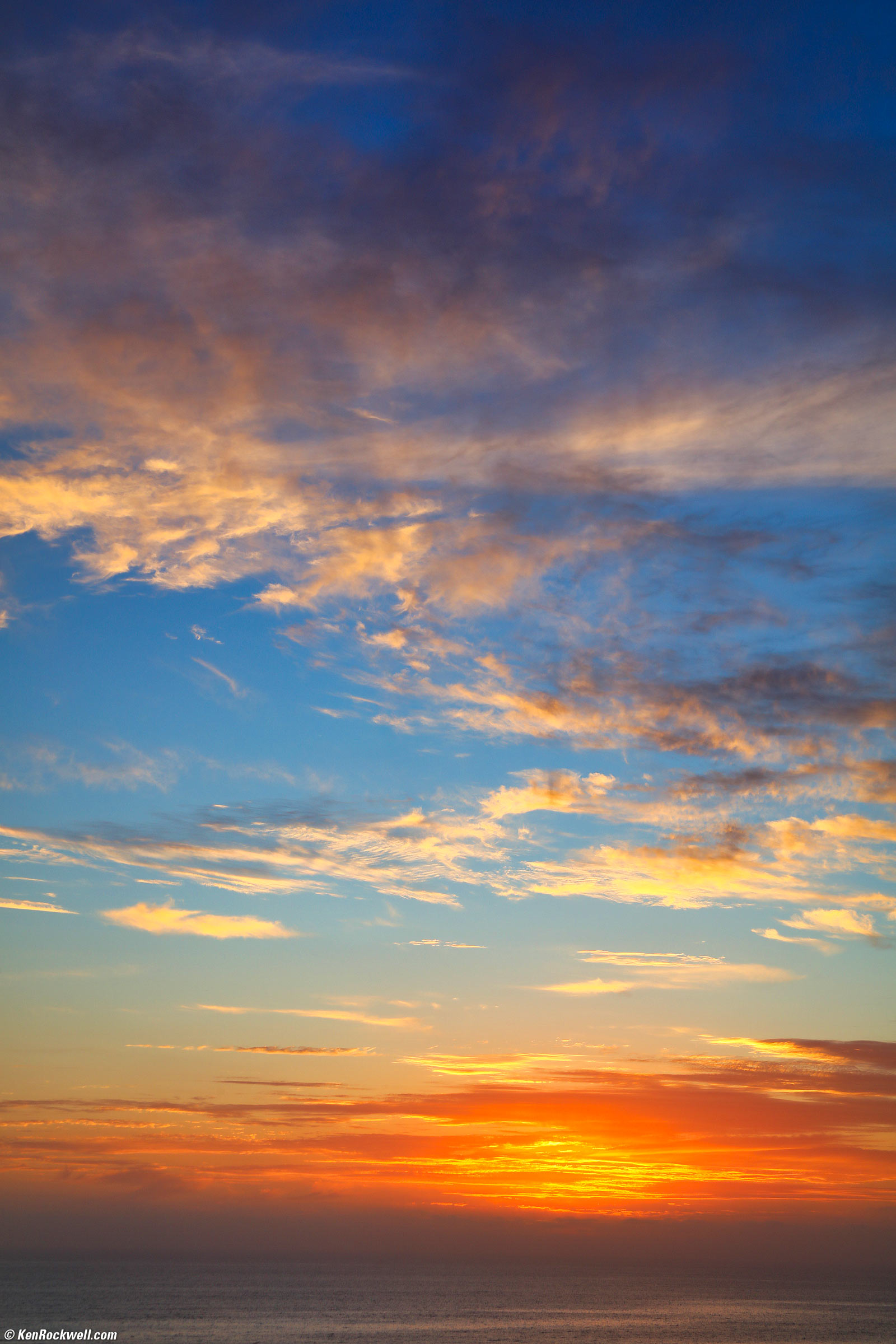 Sunset, Encinitas, California, 7:28 P.M. 21 August 2025. Canon 5DS/R, Canon EF 28-135mm IS USM at 50mm, f/6.3 at 1/100 at Auto ISO 100, +0.3 stops exposure Compensation (LV 12.0), amped-up a little in Skylum Luminar Neo software. bigger.