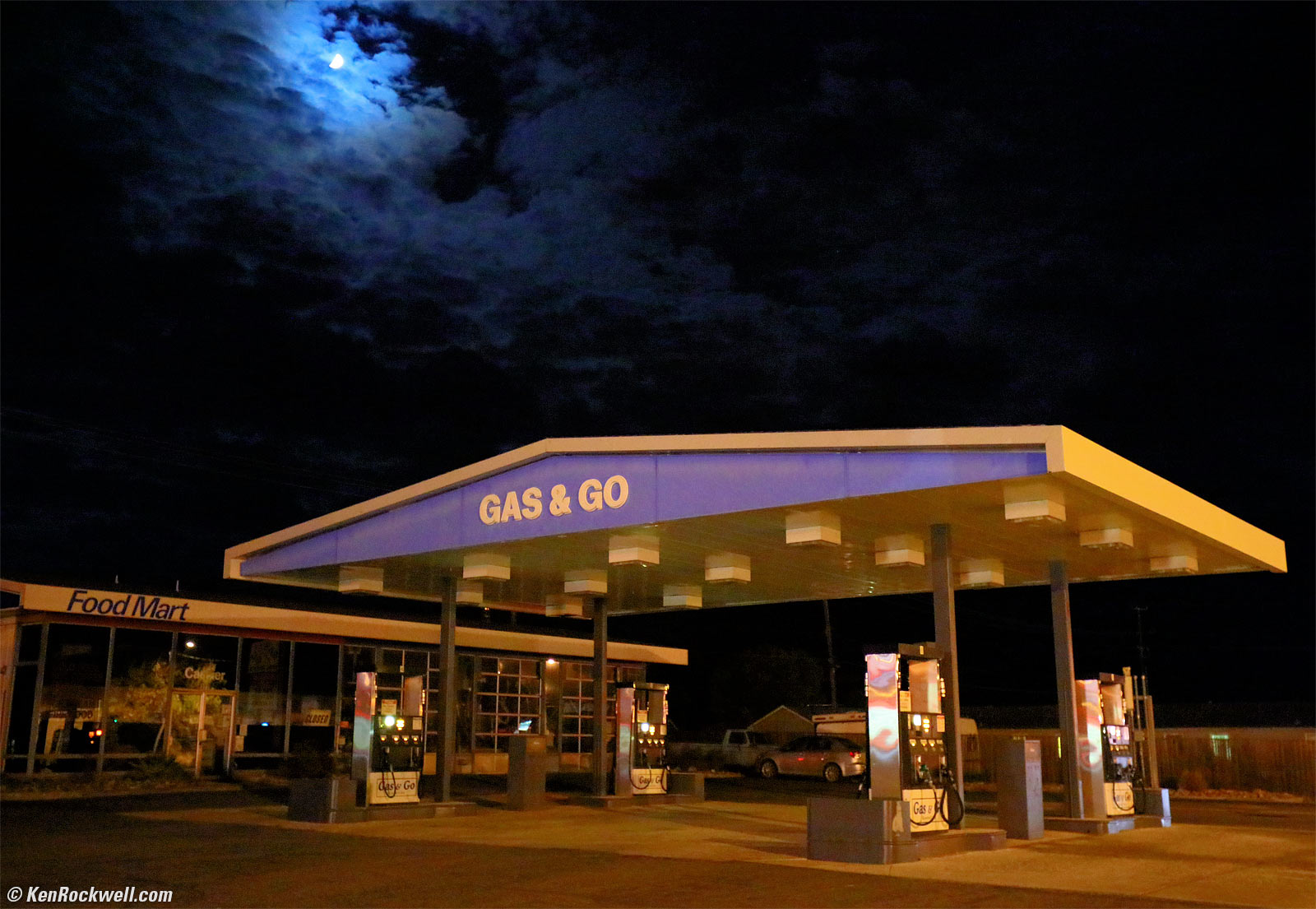 Moonrise Over the Gas & Go, Bridgeport, October 2015, 8:05 P.M. Canon 5DS R, Canon 16-35mm L IS at 33mm, f/4 hand-held at 1/5 at Auto ISO 12,800, Perfectly Clear. bigger. Shoot by moonlight handheld? No problem with the Canon 5DS R and Canon 16-35mm L IS!
