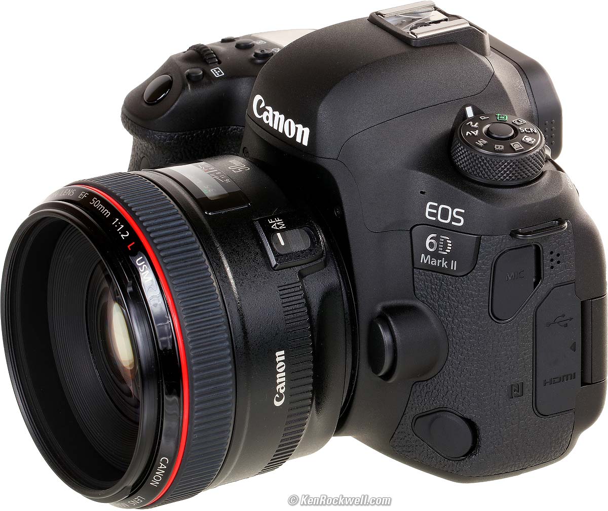 Canon 6D Mk II26MP Full-Frame, 6.5 FPS, ISO 102,400, 1,080/60p HDR, 4K Time-Lapse StereoSample Images Intro Lens Compatibility Canon 6D Mark II (27.0 oz./765g with battery and card, $1,399 new or about $900 used if you know How to Win at eBay) and Canon 50mm f/1.2 L. bigger. I got mine at B&H. I'd also get it at Adorama, at Amazon, at Crutchfield or used at eBay if you know How to Win at eBay. It comes as body-only for $1,399 and as a kit with 24-105 L IS II for $2,499 (lens review). This junk-free private website's biggest source of support is when you use those or any of these links to my personally-approved sources when you get anything, regardless of the country in which you live. Canon does not seal its boxes in any way, so never buy at retail or any other source not on my personally approved list since you'll have no way of knowing if you're missing accessories, getting a defective, damaged, returned, store demo or used camera. Buy only from the approved sources I use myself for the best prices, service, return policies and selection. Thanks for helping me help you! Ken.