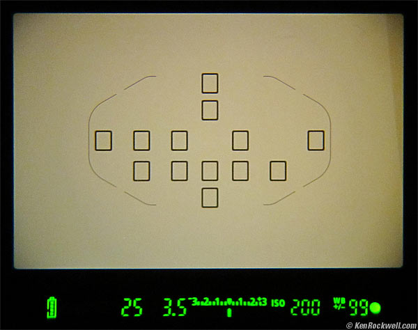 AF Points 19. Dark LCD boxes call out the active ones in the finder.