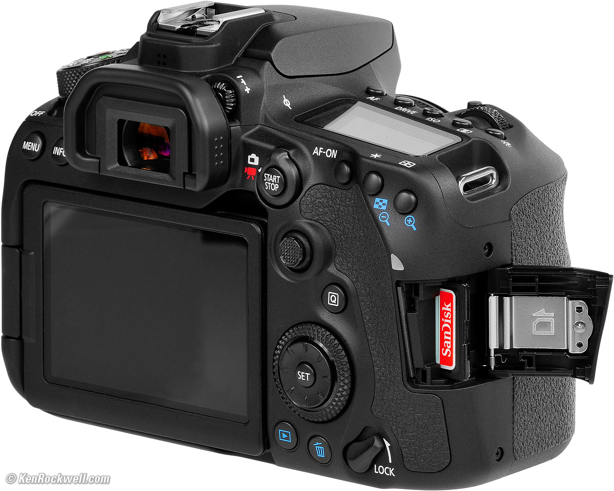 Ergonomics performance topAhhh, I love my Canons. Buttons and menus are laid out intelligently and well marked. The 90D has an excellent SD card door and power switch. They work great, and never get knocked by accident. The MENU button is on the wrong side, requiring a second hand to operate. No worries, I program my rear SET button to be a MENU button at MENU > C.Fn III > SET > MENU. Now I can hit SET to get to my Menus while shooting with one hand. That's great, but what's missing is the ability to assign the rear SET button to be a ZOOM button as I program my higher-end Canon cameras. That's OK, because If I could set that, I couldn't assign the SET button to be MENU. This may seem silly to consumers, but when you shoot all day, every day as I do, every button click costs time which costs me money, so I program everything to get me to what I need with as few clicks a possible. Again, we all have different preferences and Canon does all this better than anyone.