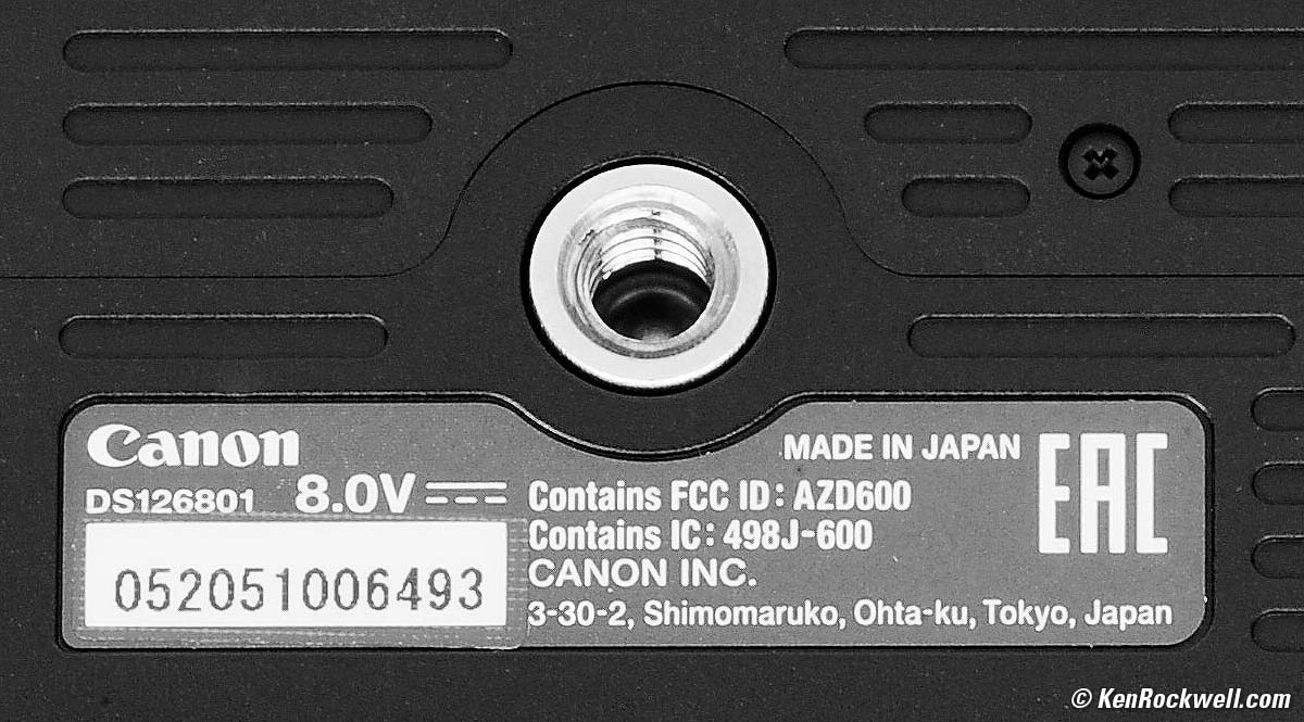 Serial NumberPrinted on a sticker glued into a recess in the bottom of the body, also recorded in EXIF data.
