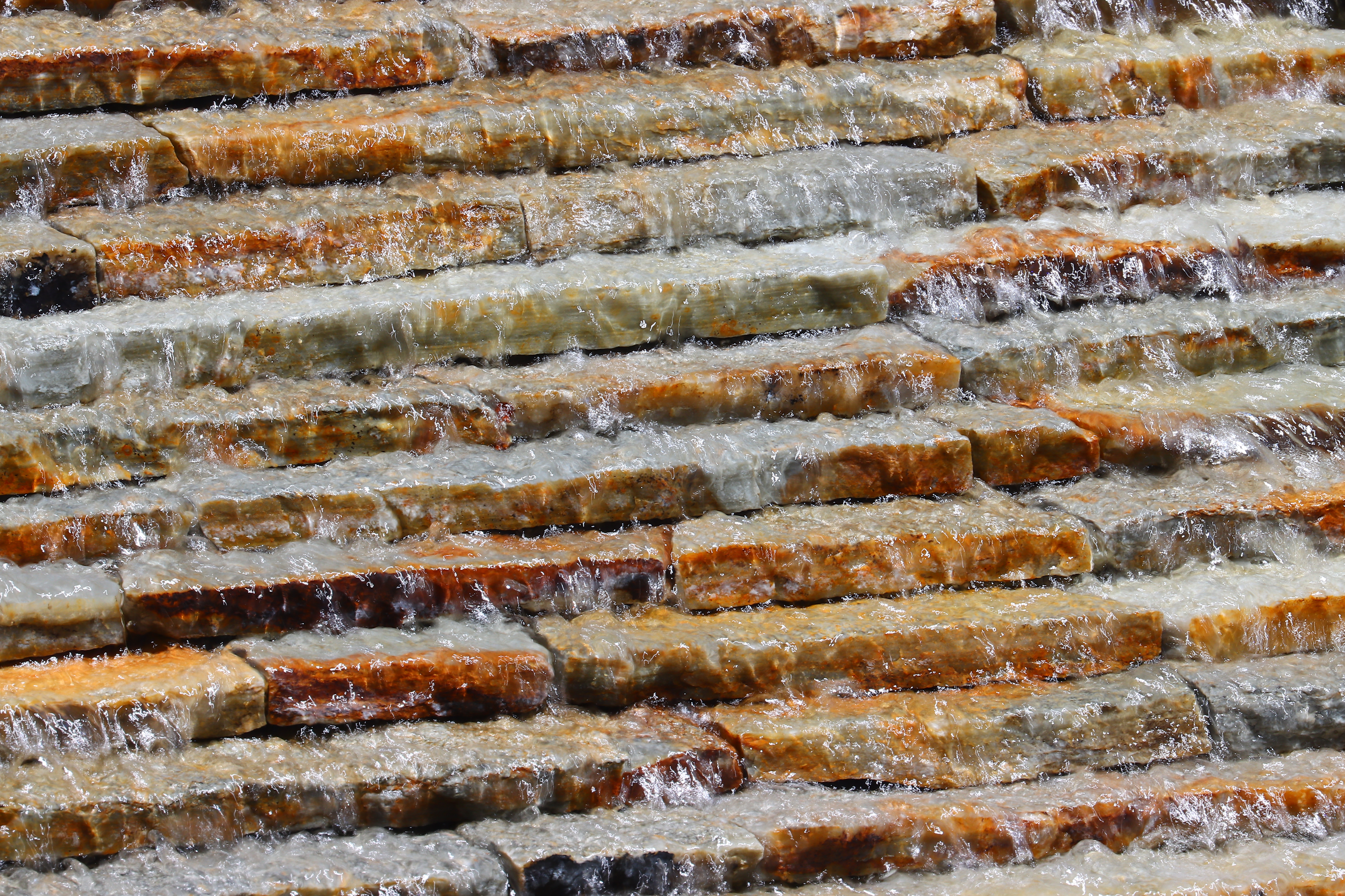 Falling Water, 1:16 PM, Friday, 15 May 2020. Canon 90D, Canon EF 100-400mm L IS II at 400mm at f/20 hand-held at 1/60 (!) at Auto ISO 100 (LV 14.6), exactly as shot. bigger or camera-original © 10 MB file. Canon's in-lens Image Stabilization is so great I have no problem hand-holding at very slow speeds so I can get both deep depth-of-field and moving water effects with no need for tripods.