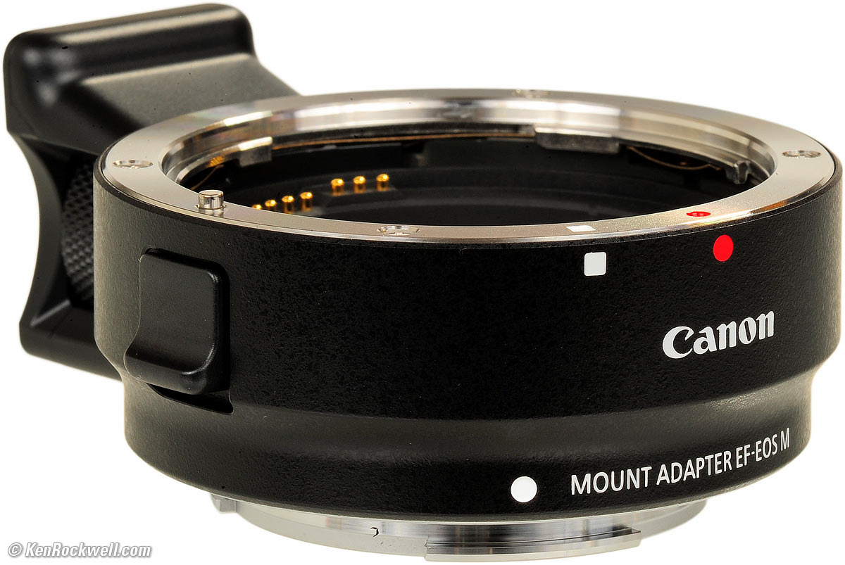 Recommendations top Intro Specs Performance Compared Recommendations There are only a few lenses native to the Canon EOS-M. To use any other lenses, you need this adapter. The native EOS-M lenses are much smaller than any other lens used with this adapter. Don't get this adapter to use an old EF-S 18-55mm lens; the combo is too big, and the EF-S 18-55 isn't as good optically as the native EF-M 18-55mm lens. Unlike most other adapters offered by other camera makers, Canon is the only camera maker with all-electronic lenses worthy of adapting both old and new (Nikon's lenses still use mechanical diaphragm linkages from the 1950s, and Fuji never made any electronic SLR lenses, for instance). Every other camera maker's adapters are kludges which lose a lot of features since the older lenses being adapted use more primitive technology than Canon's EOS system. This EOS-M adapter is flawless because Canon's EOS system is so well integrated; Canon's all-electronic EOS system of 1987 was decades ahead of its time. If you've found the time I've spent sharing this professional review helpful, this free website's biggest source of support is when you use these links, especially these links directly to it at Adorama or at Amazon, when you get anything, regardless of the country in which you live. Thanks! Ken