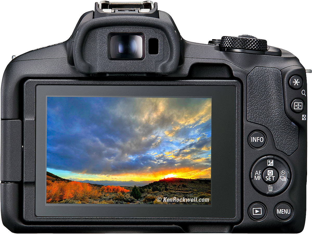 EOS R50: A fantastic ultra-ultralight camera ideal for most basic users. It's so small that, like the R100, it's missing some basic controls that skilled users appreciate (but great for most people who don't know how to use these anyway), and its finder is also dim outdoors, while otherwise it's my top suggestion as a basic camera for casual users. It's very fast for sports, easily shooting still images with full tracking autofocus at 15 frames per second. It's quite likely one of the world's best-selling cameras for exactly these reasons.