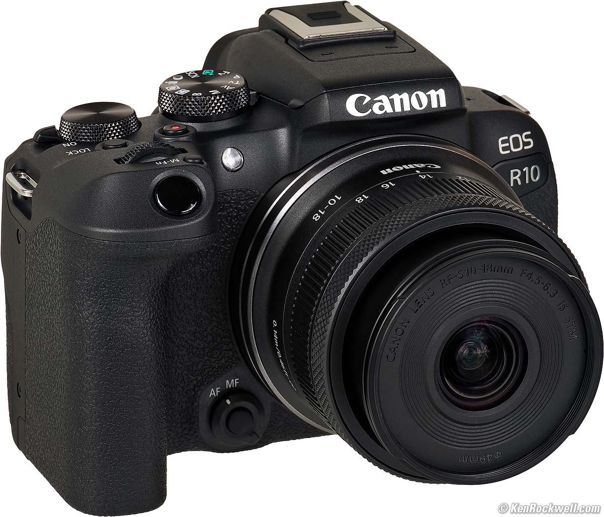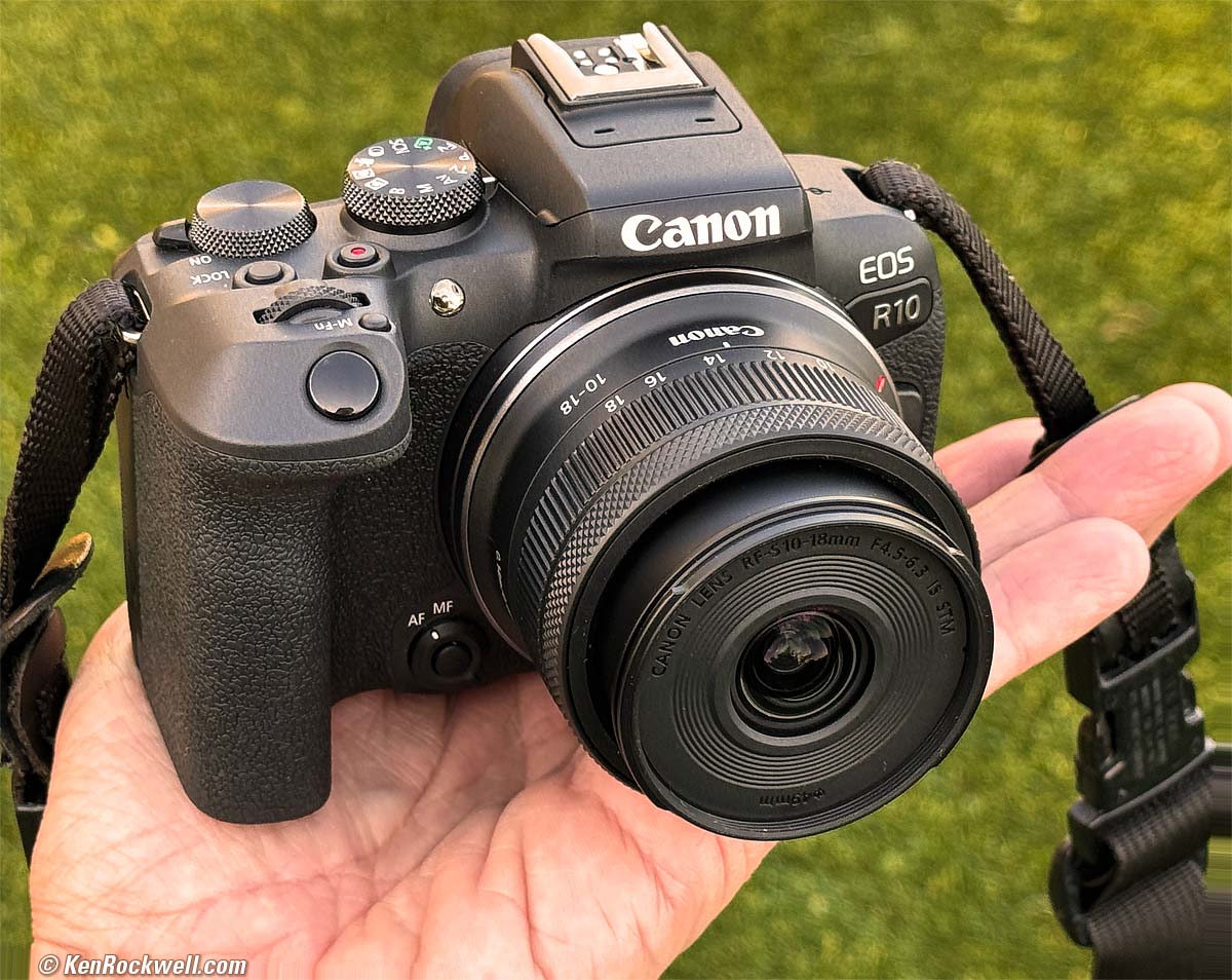 Camera CompatibilityCanon EOS R10 and RF-S 10-18mm IS STM. bigger. This lens only works on Canon's EOS-R series of mirrorless cameras. You may need to update camera firmware to work best with this new lens, for instance my EOS R10 showed a message suggesting I update when I first tried. No big deal; it shot just fine with the older firmware v1.3.1 even though the warning sounded scary. I didn't notice anything different with newer 1.4.0 firmware, although the warnings went away. Distortion and other lens corrections probably improved, and it is with this newer 1.4.0 firmware I made all the measurements below. It won't fit on, and cannot be adapted to, any DSLR because a DSLR has too much distance between its sensor and its lens mount flange. Use the EF-S 10-18mm IS STM on APS-C DSLRs.