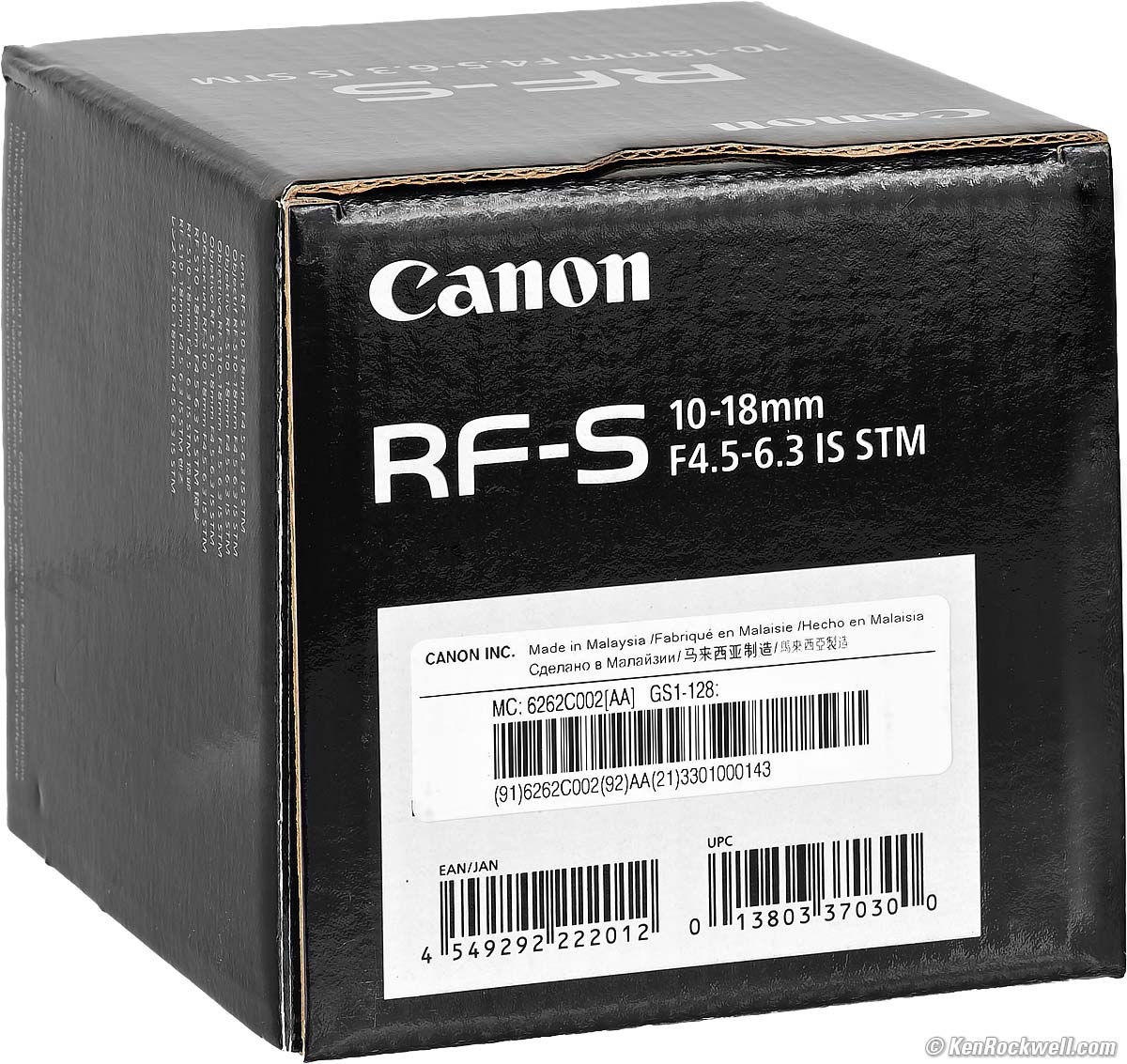 Packaging specifications topCorrugated cardboard box: Canon RF-S 10-18mm IS STM. bigger.