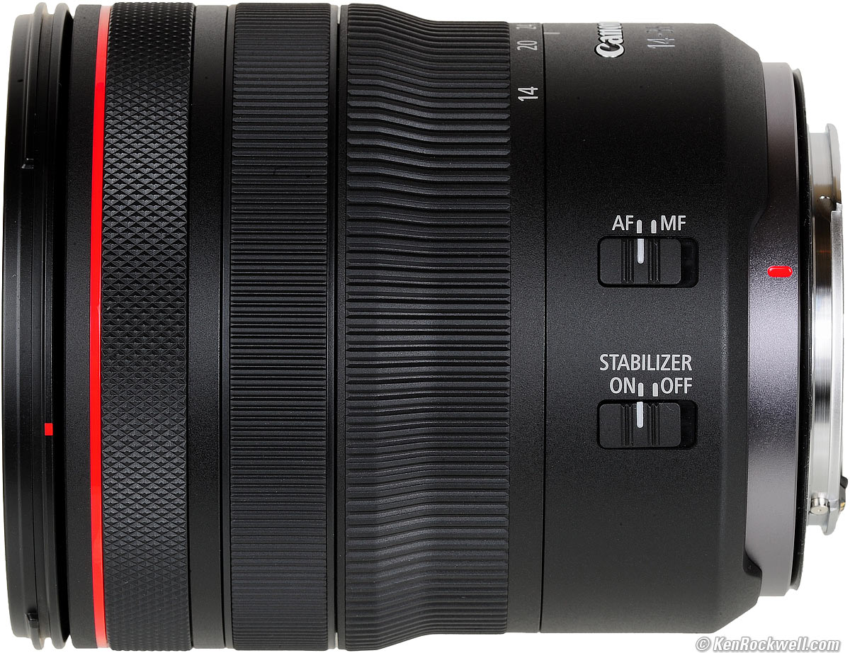 Recommendations topSample Images Intro New Good Bad Missing Compatibility Specifications USA Version Performance Compared User's Guide This is the world's best ultrawide zoom, unless you really, really need the f/2.8 aperture of the larger RF 15-35mm f/2.8L IS USM. I got my RF 14-35mm f/4L IS at B&H. I'd also get mine at Adorama, at Amazon or at Crutchfield, or used at eBay if you know How to Win at eBay. Ultrawide lenses are by far the most difficult to use well. They are never about "getting it all in;" they're all about letting you get closer. Be sure you know How to Use Ultra Wide Lenses. I use a clear (UV) protective filter instead of a cap so I'm always ready to shoot instantly. I only use a cap when I throw this in a bag with other gear without padding — which is never. The UV filter never gets in the way, and never gets lost, either. The best protective filter is the 77mm Hoya multicoated HD3 UV which uses hardened glass and repels dirt and fingerprints. For less money, the B+W 77mm 010 is an excellent filter, as is the multicoated version and the basic multicoated Hoya filters or the 77mm Nikon Clear (NC - UV), but the Hoya HD3 is the toughest and the best. Filters last a lifetime, so you may as well get the best. The Hoya HD3 stays cleaner than the others since it repels oil and dirt, and will outlast this lens. All these filters are just as sharp and take the same pictures, the difference is how much abuse they'll take and stay clean and stay in one piece. Since filters last a lifetime or more, there's no reason not to buy the best as it will last you for the next 40 years. Filters aren't throwaways like digital cameras which we replace every few years, like it or not. I'm still using filters I bought back in the 1970s! I got my RF 14-35mm f/4L IS at B&H. I'd also get mine at Adorama, at Amazon or at Crutchfield, or used at eBay if you know How to Win at eBay. This 100% all-content, junk-free website's biggest source of support is when you use those or any of these links to my personally approved sources I've used myself for way over 100 combined years when you get anything, regardless of the country in which you live — but I receive nothing for my efforts if you get it elsewhere. Canon does not seal its boxes in any way, so never buy at retail or any other source not on my personally approved list since you'll have no way of knowing if you're missing accessories, getting a defective, damaged, returned, dropped, incomplete, gray-market, store demo or used lens — and all of my personally approved sources allow for 100% cash-back returns for at least 30 days if you don't love your new lens. I've used many of these sources since the 1970s because I can try it in my own hands and return it if I don't love it, and because they ship from secure remote warehouses where no one gets to touch your new lens before you do. Buy only from the approved sources I've used myself for decades for the best prices, service, return policies and selection. Thanks for helping me help you! Ken.
