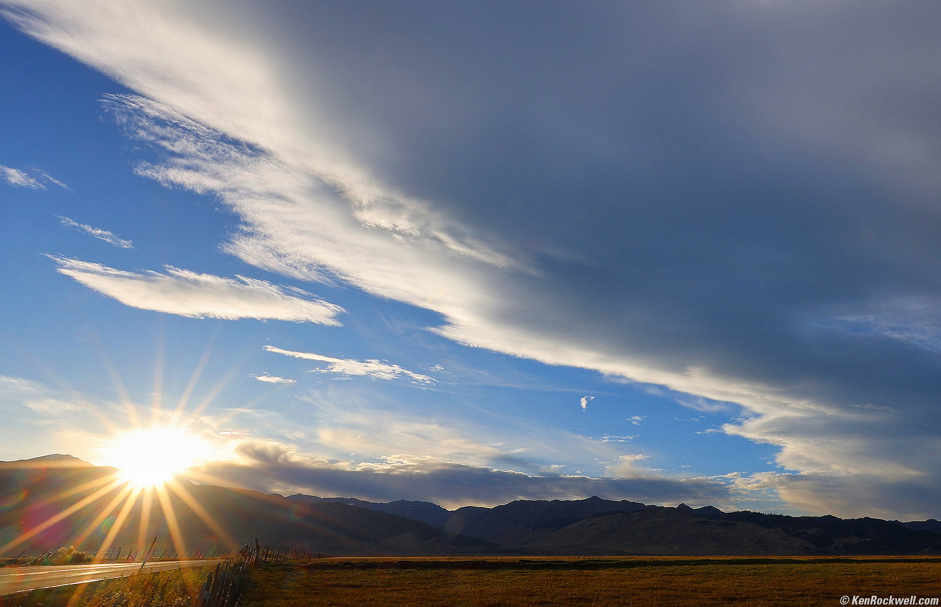 Huge Cloud, Bridgeport, California, 5:46 P.M., 13 October 2023. Canon EOS R6 II, cropped somewhat from RF 14-35mm f/4 L IS USM at 14mm, f/22 at 1/60 at Auto ISO 100 (LV 15.0) Skylum Luminar Neo. More tech details. bigger or fit-to-screen. I shot at f/22 specifically to get the big sunstar.