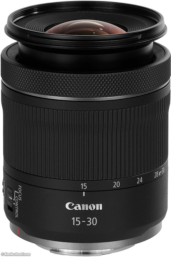 Canon RF 15-30mm f/4.5-6.3 IS STM (67mm filters, 13.5 oz./384g, 0.92'/0.28 meters close-focus, 0.16× macro ratio, (0.42'/5"/0.128m or 0.52× in manual focus), $449). bigger. I got mine at B&H. I'd also get mine at Adorama, at Amazon or at Crutchfield, or get it used for about $320 if you know How to Win at eBay. This 100% all-content, junk-free website's biggest source of support is when you use those or any of these links to my personally approved sources I've used myself for way over 100 combined years when you get anything, regardless of the country in which you live — but I receive nothing for my efforts if you get it elsewhere. Canon does not seal its boxes in any way, so never buy at retail or any other source not on my personally approved list since you'll have no way of knowing if you're missing accessories, getting a defective, damaged, returned, dropped, incomplete, gray-market, store demo or used lens — and all of my personally approved sources allow for 100% cash-back returns for at least 30 days if you don't love your new lens. I've used many of these sources since the 1970s because I can try it in my own hands and return it if I don't love it, and because they ship from secure remote warehouses where no one gets to touch your new lens before you do. Buy only from the approved sources I've used myself for decades for the best prices, service, return policies and selection.