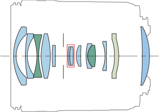 Optics specifications topCanon RF 15-30mm IS internal optical construction. Aspherical and UD elements. IS section. 13 elements in 11 groups. 1 Aspherical element. 2 UD extra-low dispersion elements which help reduce secondary axial chromatic aberration. The front section extends about 0.35" (9 mm) as zoomed from 30mm to 15mm.