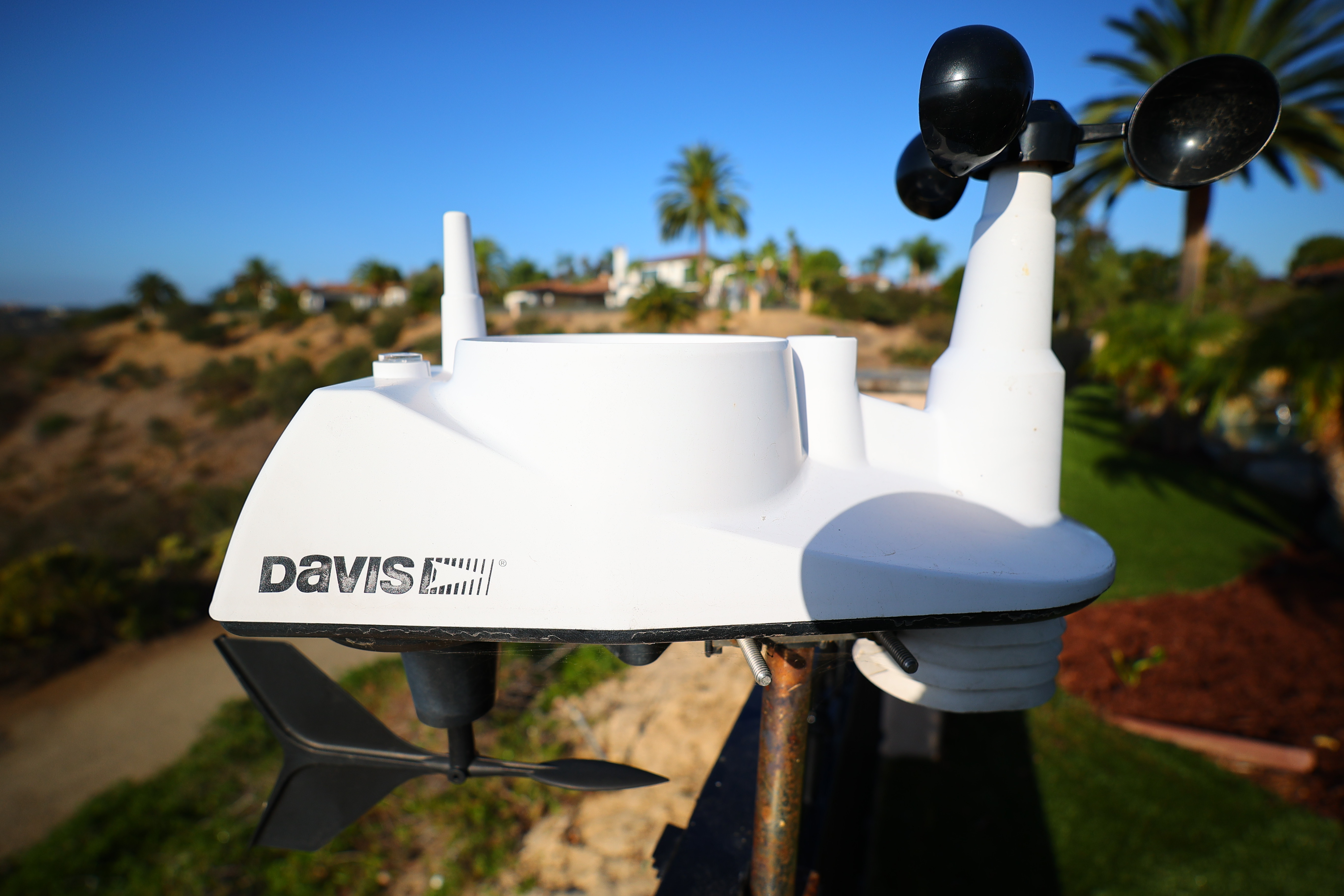 Made-in-U. S. A. Davis 6250 weather station, 28 October 2022. Canon EOS R6, Canon RF 15-30mm IS STM at 30mm at f/6.3 at 1/500 at Auto ISO 100 (LV 14.4). bigger or camera-original © file.