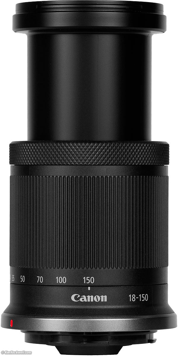 Canon RF-s 18-150mm IS STM (55mm filters, 10.9 oz./310g, 0.4~1.4'/0.12~0.43m close focus, 0.5× macro ratio, $499). bigger. I got mine at B&H. I'd also get it at Adorama or at Crutchfield, or used at eBay if you know How to Win at eBay. Hint: get this as part of a kit with your R7 or R10. This 100% all-content, junk-free website's biggest source of support is when you use those or any of these links to my personally approved sources I've used myself for way over 100 combined years when you get anything, regardless of the country in which you live — but I receive nothing for my efforts if you get it elsewhere. Canon does not seal its boxes in any way, so never buy at retail or any other source not on my personally approved list since you'll have no way of knowing if you're missing accessories, getting a defective, damaged, returned, dropped, incomplete, gray-market, store demo or used lens — and all of my personally approved sources allow for 100% cash-back returns for at least 30 days if you don't love your new lens. I've used many of these sources since the 1970s because I can try it in my own hands and return it if I don't love it, and because they ship from secure remote warehouses where no one gets to touch your new lens before you do. Buy only from the approved sources I've used myself for decades for the best prices, service, return policies and selection.