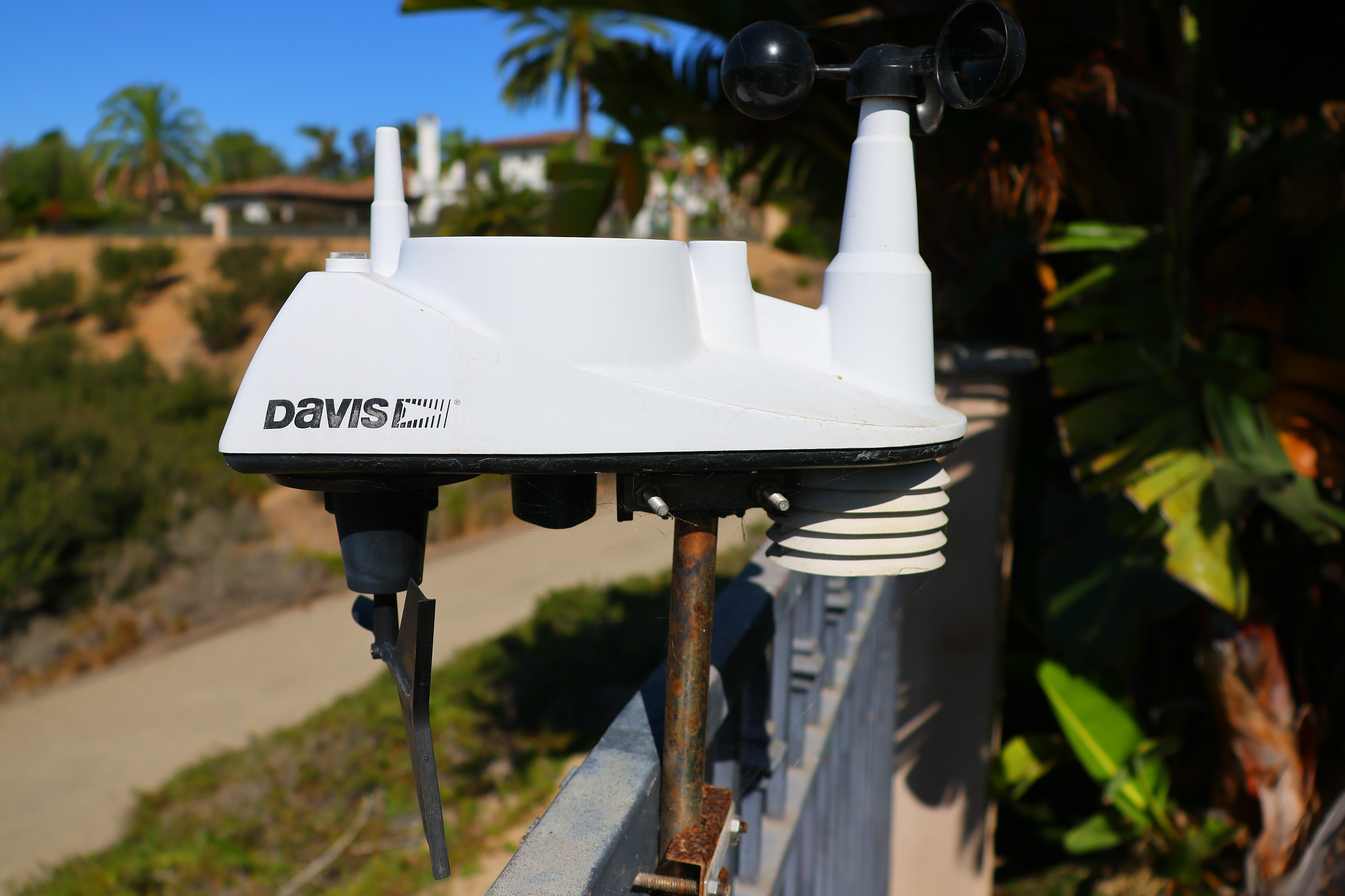 Stopped down to around f/8 ~ f/11 from 70 ~ 150mm bokeh is awful, so be sure to use larger apertures if you care. Stopped down it becomes little donuts rather than circular blobs. Here are photos from headshot distance wide-open. I'm focused on the DAVIS logo. Click any for the © camera-original file: Made-in-U. S. A. Davis 6250 weather station, Saturday, 07 August 2022. Canon EOS R7, OWC ATLAS S PRO 256GB SDXC card, Canon RF-s 18-150mm IS STM at 18, 35, 70 and 150mm (28, 55, 110 and 240mm equivalent) at 1/3,200, 1/2,500 , 1/1,250 , and 1/1,000 at Auto ISO 100 (LV 15¼, 16.0, 15¾, and 15.4), Perfectly Clear. bigger or full resolution. As always, if you want to throw the background as far out of focus as possible, shoot at 150mm at f/6.3 and get as close as possible.