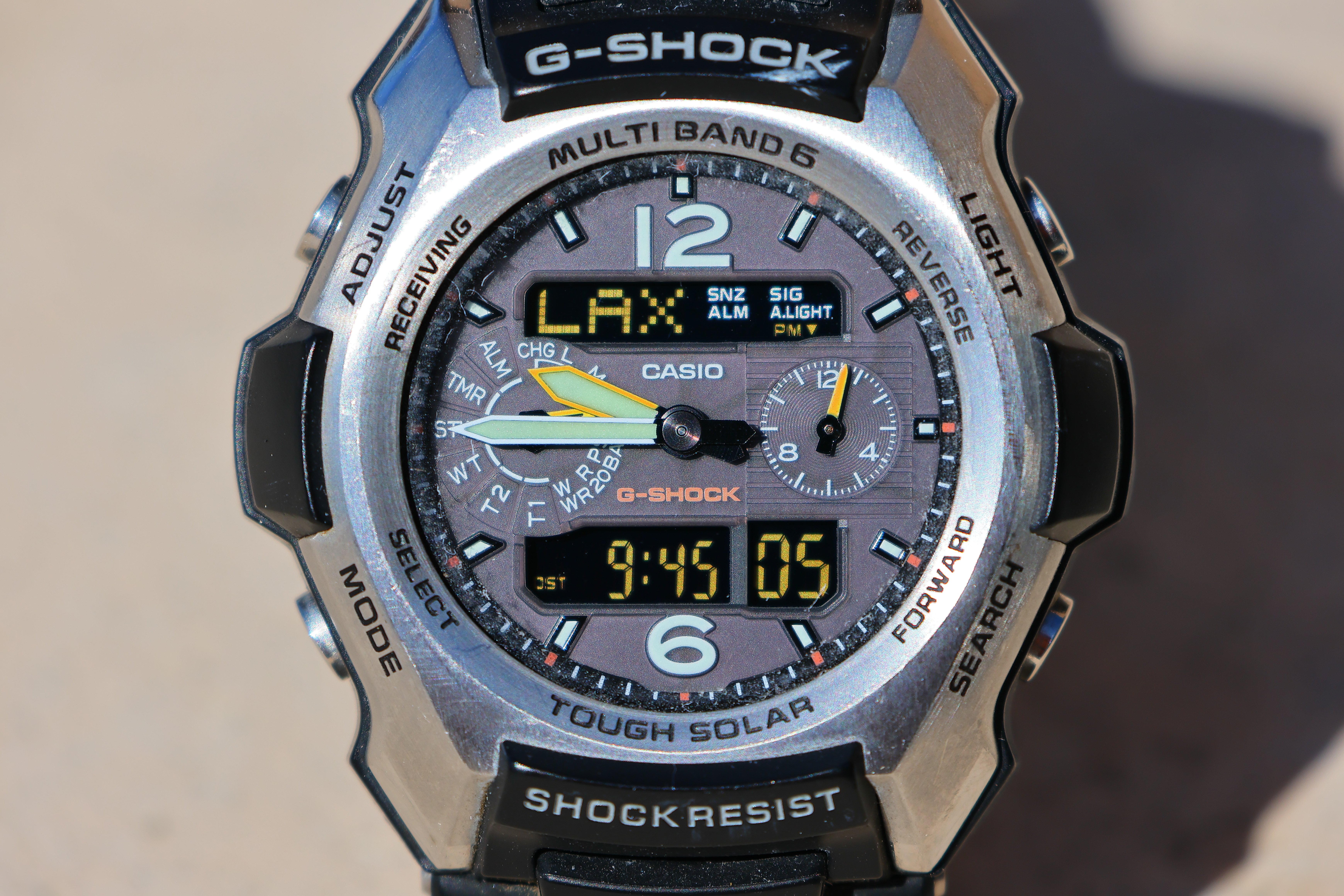 At 150mm wide-open at f/6.3It gets super close, to 1/3 life size, and it's super sharp even wide-open. Bravo! Casio G-Shock Solar Atomic Watch at 150mm wide-open at f/6.3 at close-focus distance, 9:45 AM, 07 August 2022. Canon EOS R7, RF-s 18-150mm IS STM at f/6.3 at 1/800 at ISO 100, -0.7 stops exposure compensation (LV 15.0). bigger or camera-original © file.