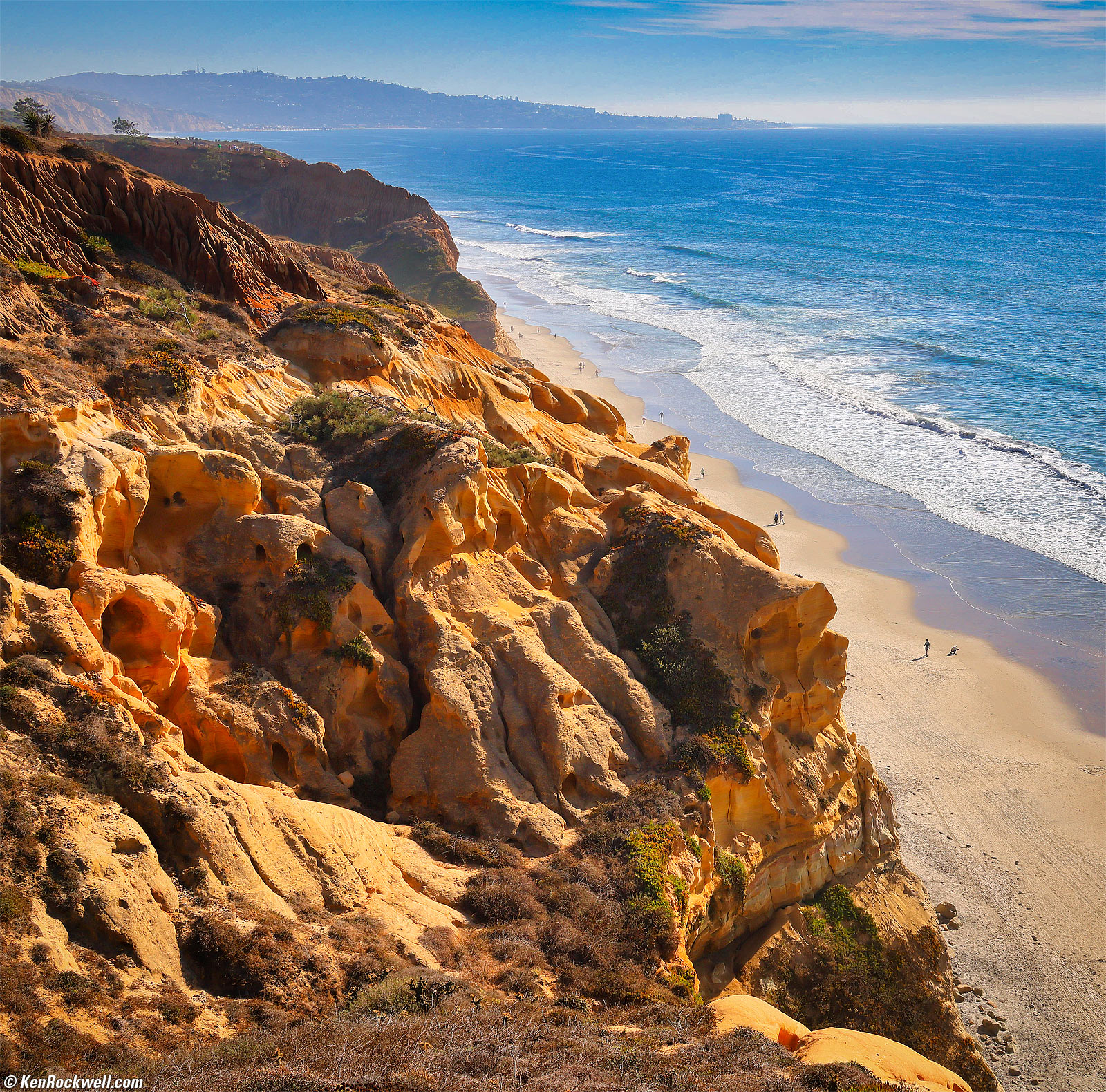 Torrey Pines State Reserve, La Jolla, California, 3:28 PM, Sunday, 27 October 2024. Square crop from Canon EOS R5 II, RF 24-240mm IS USM at 35mm at f/11 at 1/400 at Auto ISO 200 (LV 14.6) in Highlight Tone Priority D+ mode (MENU > CAMERA page 3 > Highlight tone priority > D+), Skylum Luminar Neo software. bigger. Yes, my favorite lens of all time, above every one of my LEICA APO ASPH SUMMICRONS and SUMMILUX and every other lens, is my cherished Canon RF 24-240mm IS USM. The 24~240mm does everything I need in just one lens. It's super sharp (better than Sony's barely good enough FE 24-240mm), and covers 20% more range than Nikon's Z 24-200mm which only works on Nikon's cameras. I much prefer the Canon system for mirrorless, and while LEICAs are nice to keep in your safe and brag about how sharp they are, LEICAs aren't very useful for actually making pictures. I used Canon's D+ highlight preservation mode (MENU > CAMERA page 3 > Highlight tone priority > D+), but honestly I've never seen it make any significantly visible difference.