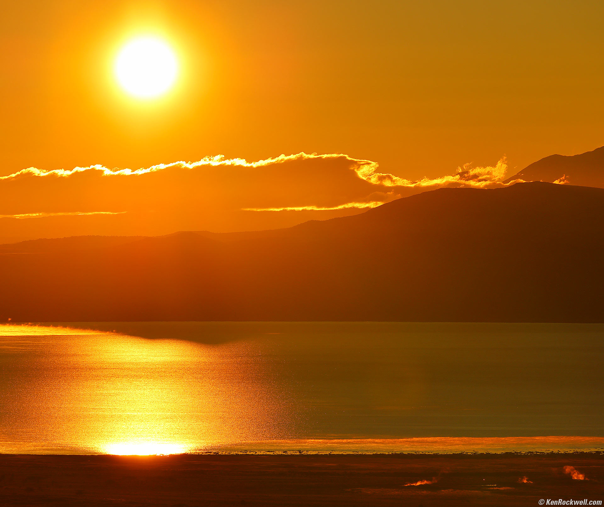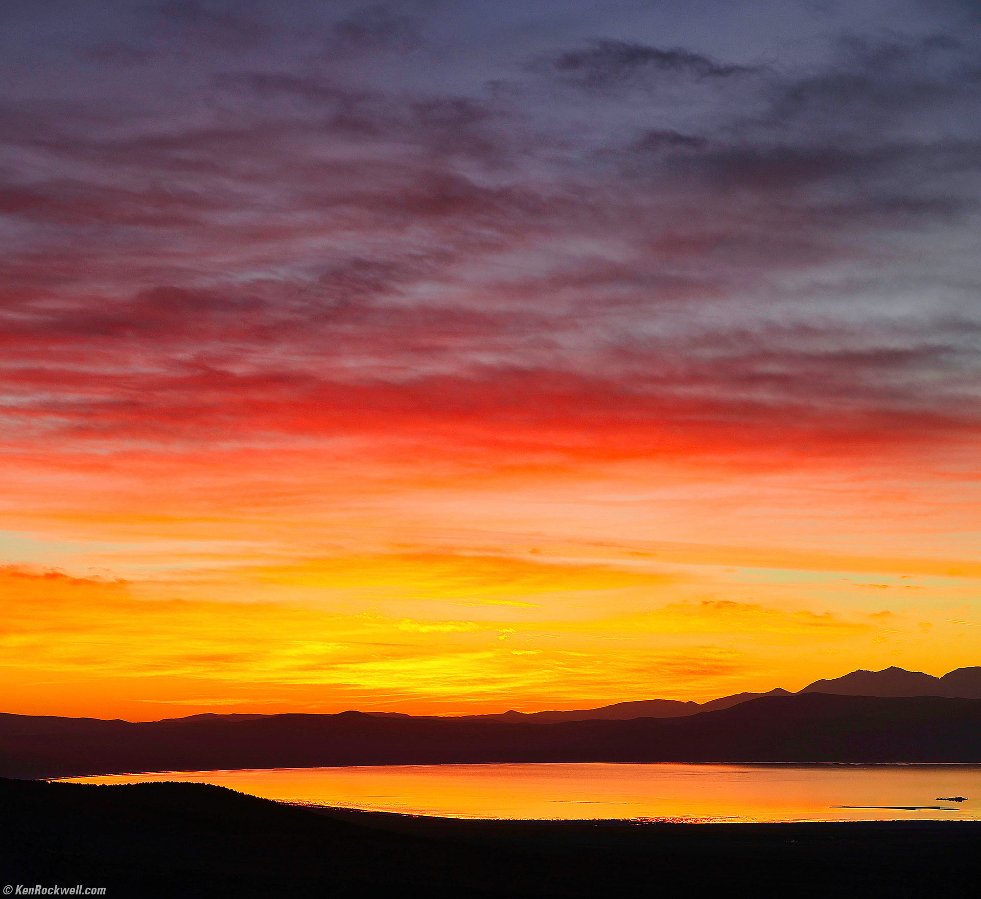 Sunrise Over Mono Lake as Seen From Conway Summit, Lee Vining, California, 7:20 A.M., 18 October 2024. Canon R5 II, RF 24-240mm IS USM at 240mm at f/11 at 1/1,000 at Auto ISO 100, -1 stop exposure compensation (LV 17.0). More tech details. bigger or fit-to-screen.