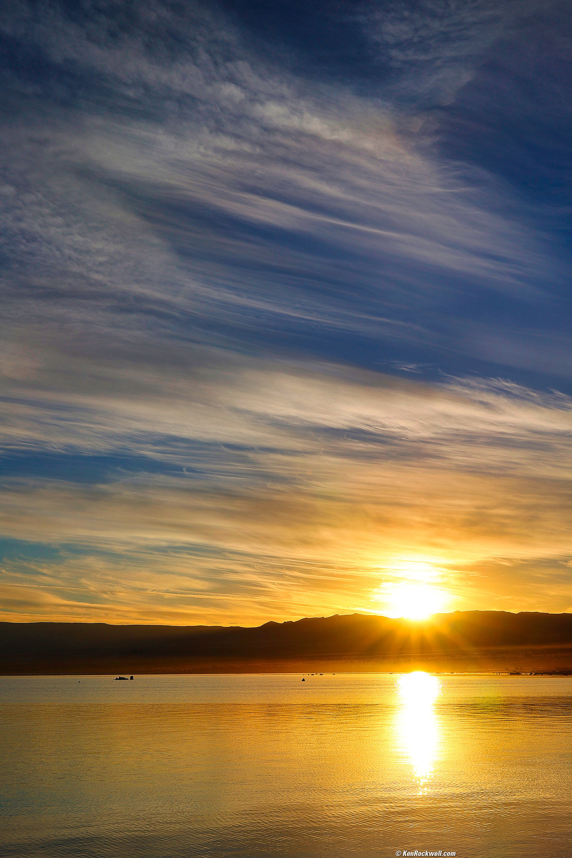Sunrise, Mono Lake, California, 7:27 A.M., 19 October 2022. Canon EOS R6, RF 24-240mm IS USM at 50mm, f/16 at 1/320 at Auto ISO 100 (LV 16.4). More tech details. bigger or fit-to-screen.