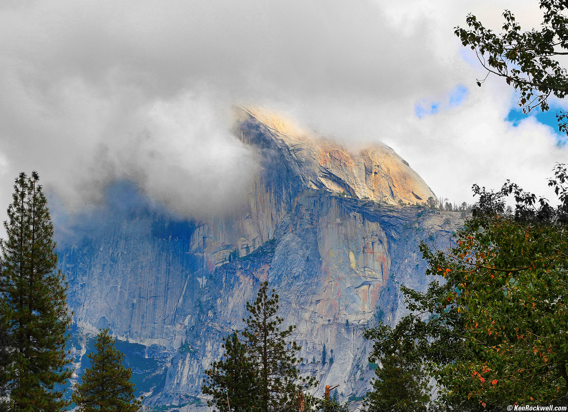 A Touch of Cloud, Half Dome, Yosemite National Park, California, 1:16 P.M., 22 October 2022. Canon EOS R6, RF 24-240mm IS USM at 118mm, f/11 at 1/100 at Auto ISO 100 -1/3 stop exposure compensation (LV 13.6). More tech details. bigger or fit-to-screen.