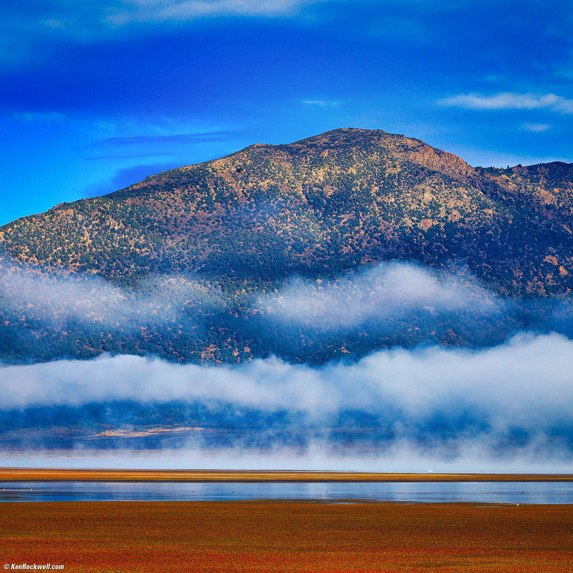 Inversion Fog Over the Bridgeport Reservoir, Bridgeport, California, 8:49 A.M., 17 October 2024. Square crop from Canon R5 II, RF 24-240mm IS USM at 100mm at f/13 at 1/125 at Auto ISO 100 (LV 14.4), Skylum Luminar Neo and Radiant Photo software. More tech details. bigger or fit-to-screen.